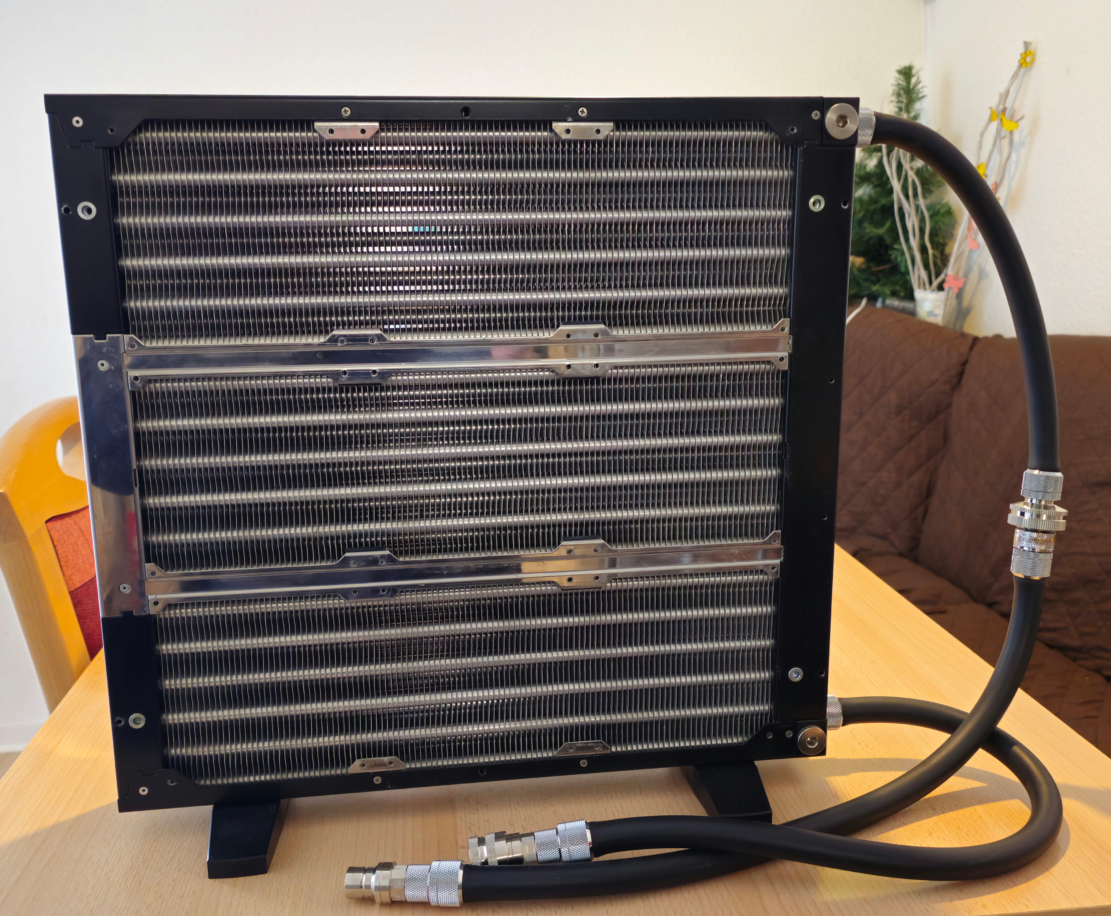 Finde, sieht nicht schlecht aus, aber ich bin im Grunde kein Fan von geschlossenen Kühler. Hatte schonmal solch einen verbaut und der hat mir damals nicht gefallen. Zudem komme ich mit den Anschlüssen an dieser Position auch nicht ganz klar, weil es mein ganzes Konzept was ich mir hier aufgebaut habe zerstört.