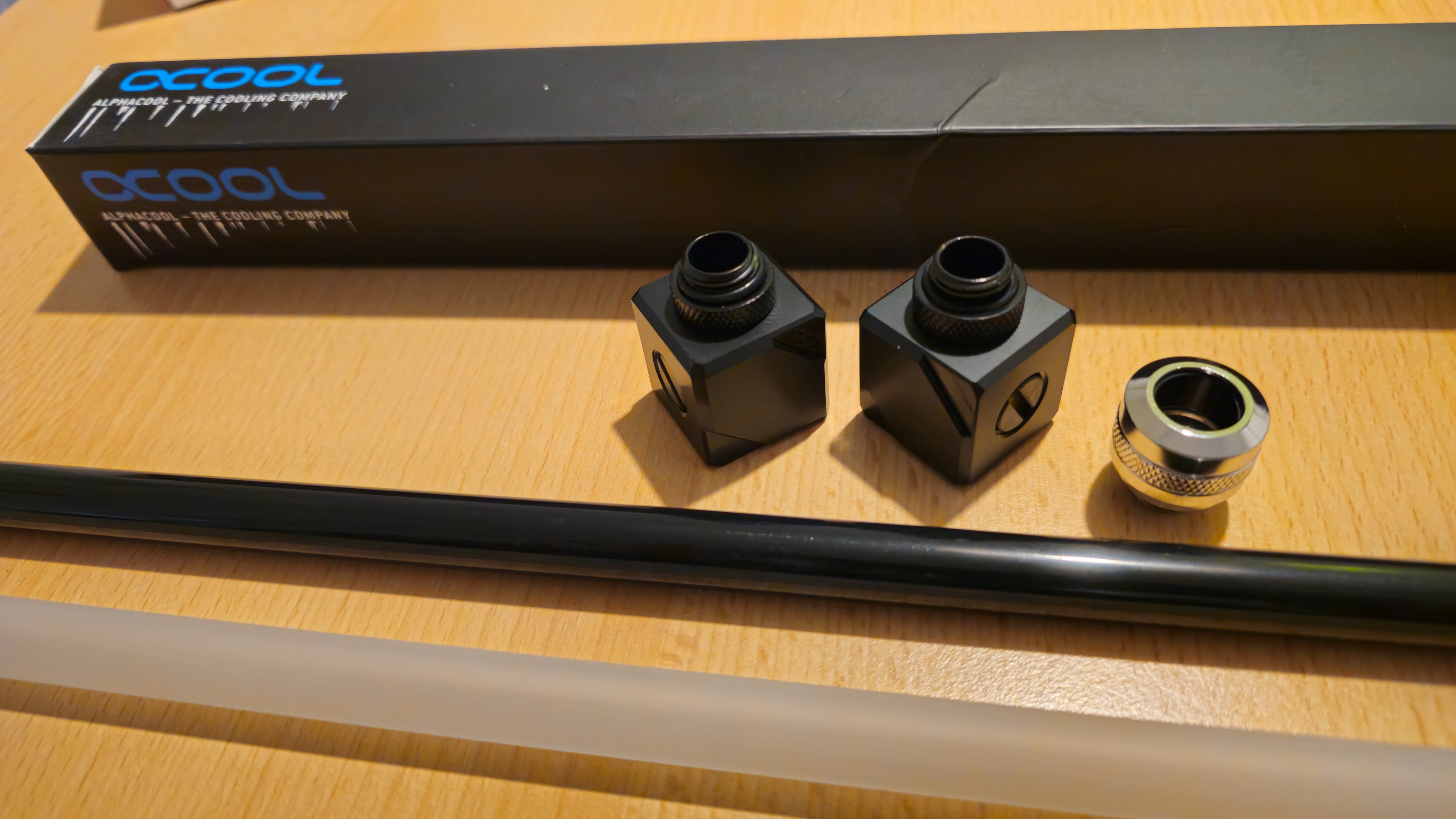 Es werden vier Röhren sein, die ich hierzu neu machen muss. Aber eine davon wird aus Messing (Schwarz) sein. Die Würfel sind aus Acetal gefertigt und werden sicherlich auch gut zum Ausgleichsbehälter vom Style mit diesem Material passen.