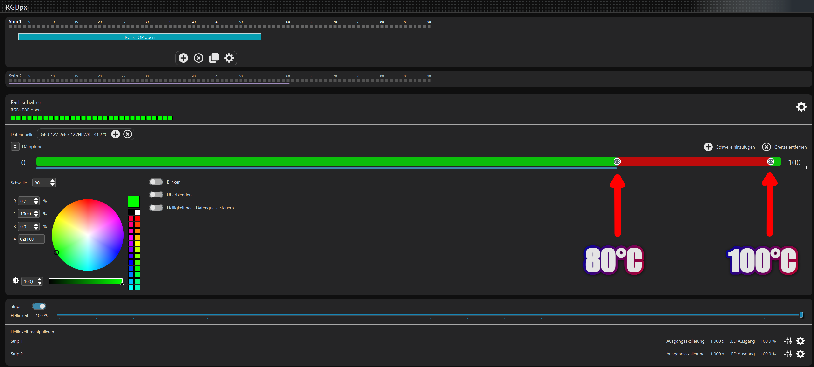 Habe die Temperatur während des Betriebs und der Durchflusssensor gibt auch einen Alarm aus. Die Beleuchtung vom Octo und über dem Farbwerk lasse ich weg. Ich würde es aber auch hinbekommen, wenn ich noch zwei Temperaturfühler setze, die zu beiden Geräten gehen. Denn das Problem ist ja nur, dass ich hierzu diese Software Temperatursensoren einrichten musste und diese beim Starten des Rechners, bis die Aquasuite gestartet wird, nichts ausgeben.