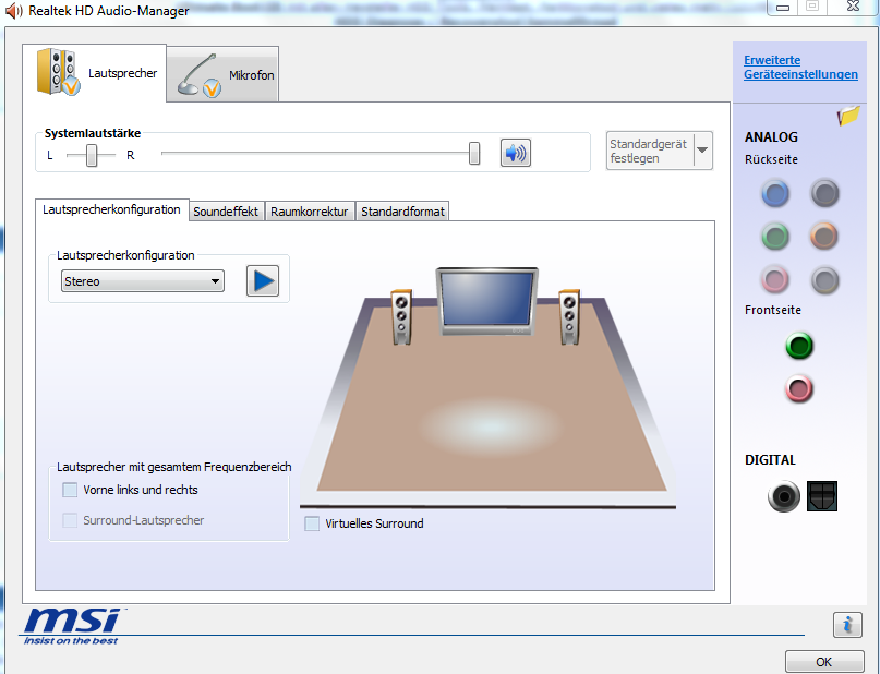 Ich konnte das Problem nun eingrenzen es liegt daran das mein Analog sound deaktiviert ist und ich es nicht aktivieren kann bzw es wird nicht angezeigt das ein stecker (hinten drinne ist)... hab leider noch keine Lösung gefunden.