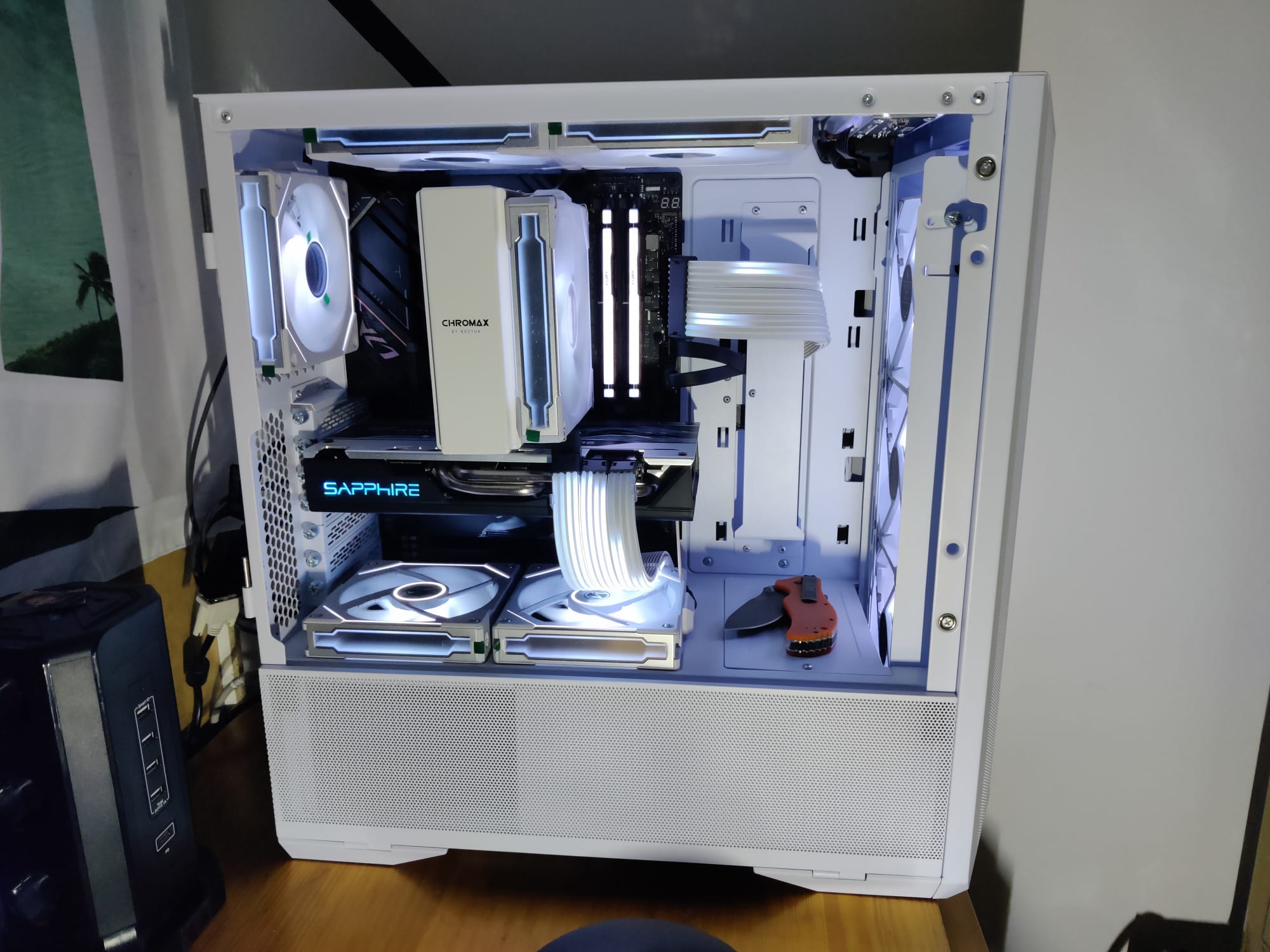 Ziel war es einen schönen (fast) white build mit den sehr coolen Effekten der Lian Li Strimer zu bauen. Ich komme eher aus der Ecke "ja kein RGB, nicht mal der PowerSwitch darf leuchten" ... bin also was RGB anging komplett unwissend gewesen.