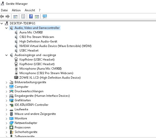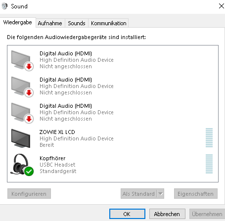 Mein HDMI Monitor wurde aber als Audio erkannt und mein USB In-Ear Kopfhörer auch.