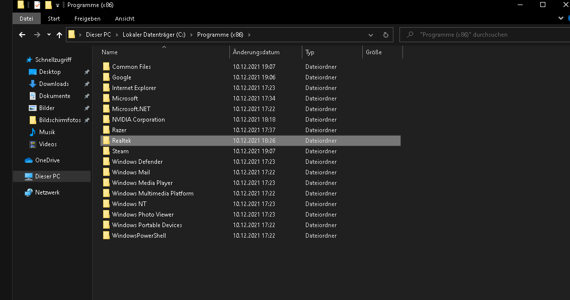 Daraufhin habe ich einfach mal den Treiber deinstalliert (Ordner gelöscht und aus den Programmen deinstalliert) und den neusten Realtek Treiber für Windows 10 installiert.