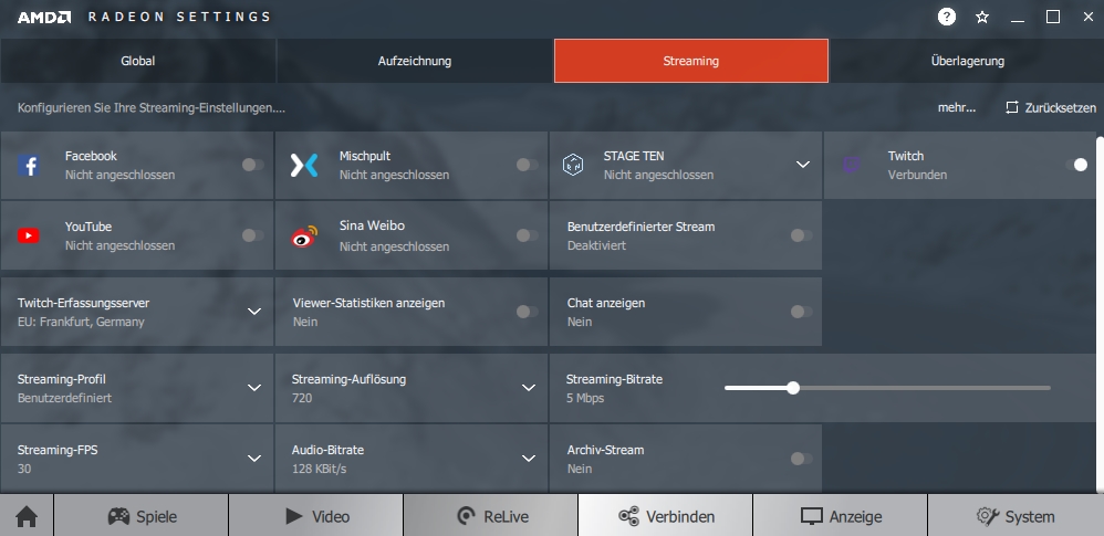 Als Software benutze ich übrigens ReLive, also müsste es in der Theorie tatsächlich funktionieren. Anbei meine Einstellungen sowie auch das Ergebnis von speedtest.net