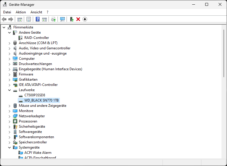 Im Gerätemanager allerdings wird mir die 1tb m.2 angezeigt und unter Eigenschaften wird mir auch gesagt das diese einwandfrei funktioniert und ich den Best möglichen Treiber drauf habe