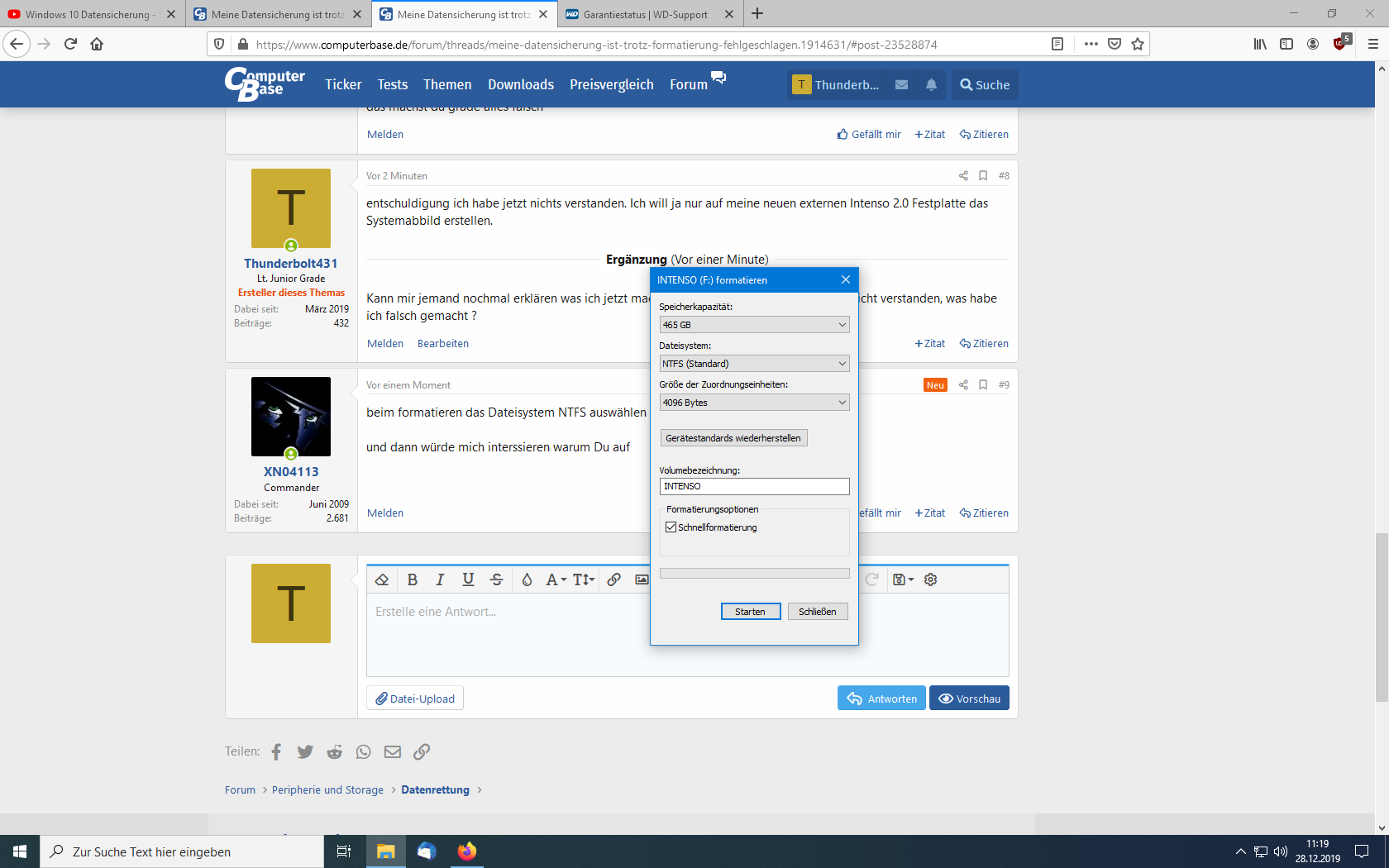 ich möchte gerne auf meiner neuen externen Festplatte ein Systemabbild machen lassen. Aber es kommt diese Meldung siehe Bild, obwohl ich eine Formatierung gemacht habe.