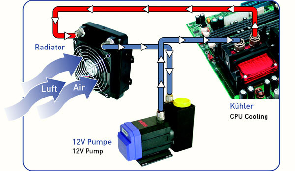 Bei Konfi 1 hab ich mir gedacht, ich mach die Lüftersteuerung mittels den Sensor über das MoBo (Opt-Tmp, Opt-Fan). In konfi 2 ist der Sensor samt Lüftersteuerung bereits in die Pumpe integriert, ist dafür erheblich teurer.