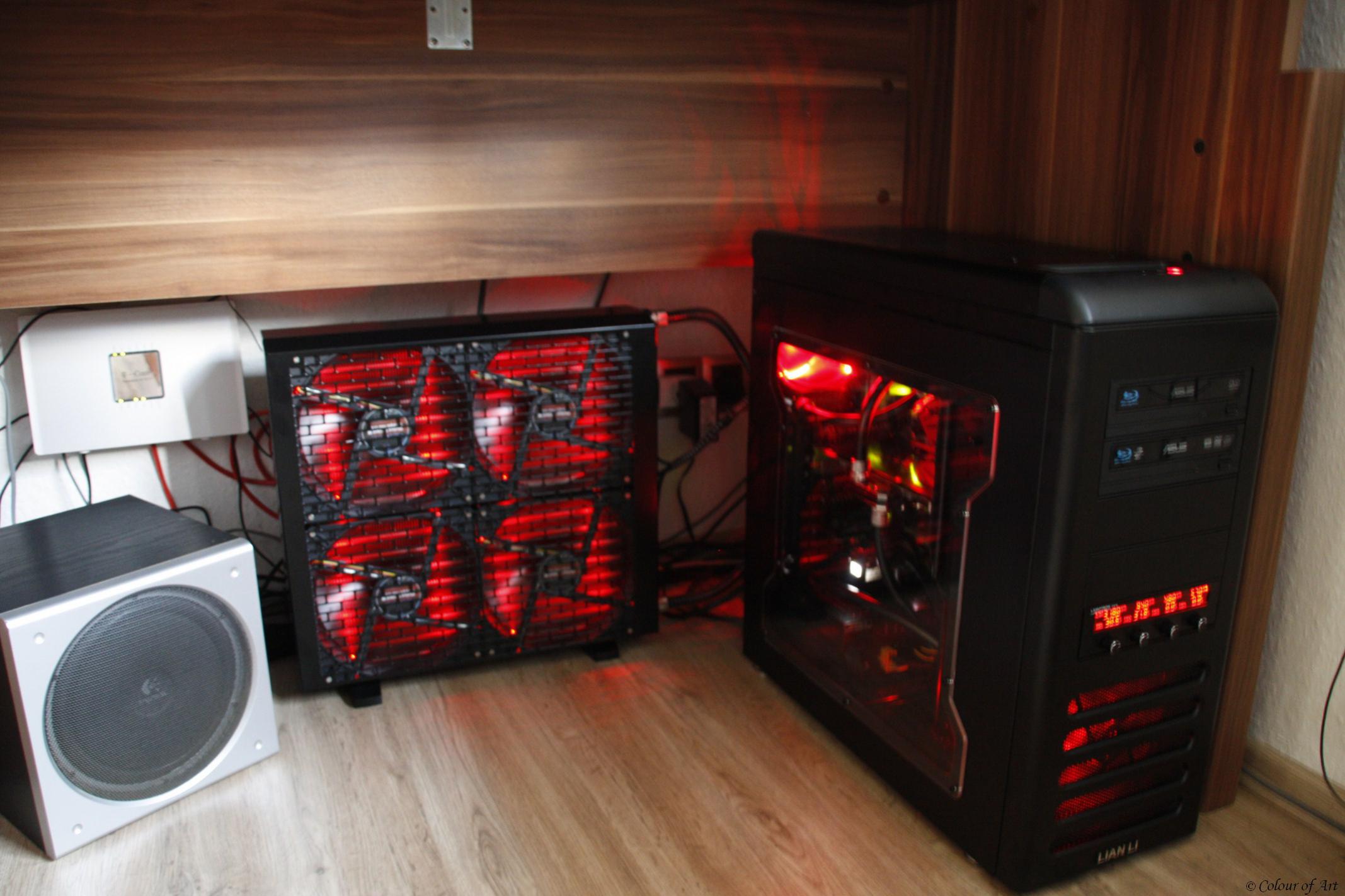 Wollte mir die Phobya G-Silent 18 700rpm Red LED dazu holen, weil mein restliches System eh mit den Dingern ausgestattet ist und die sind leise und schaufeln bis zu Luftförderleistung: 169 m³/h / 100 CFM´ bei max 700 U auf das Alu-Blech.