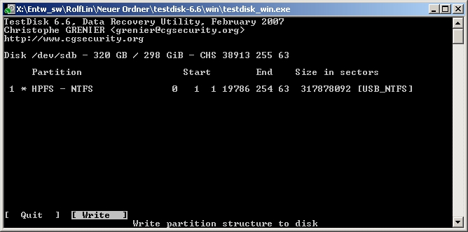 Ansonsten beende Testdisk jeweils mit Quit und starte Windows neu.