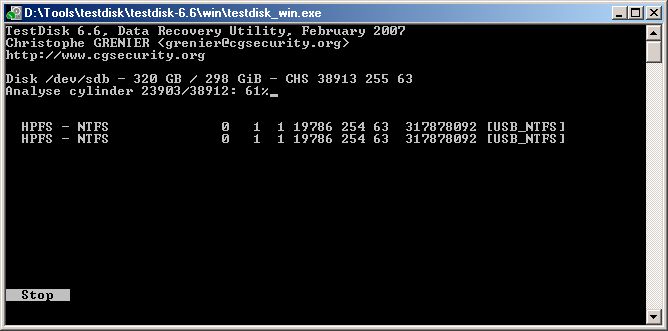 Starte Testdisk erneut.