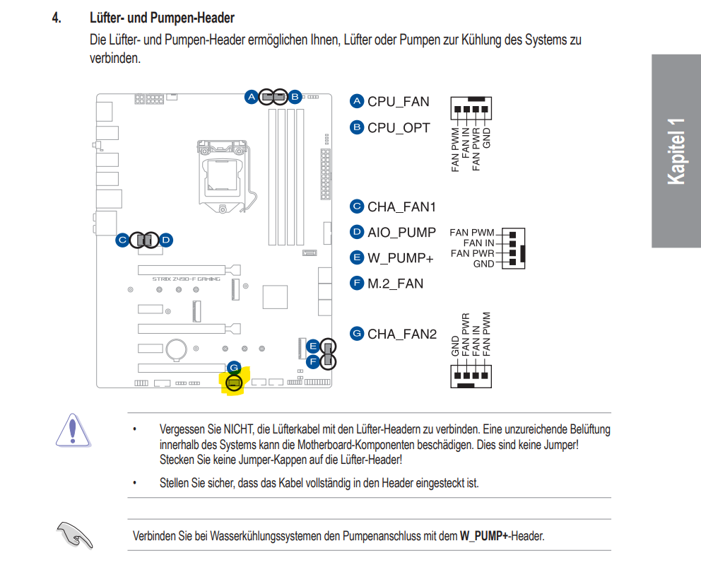 ich versuche meine Gehäuselüfter zum Laufen zu bringen, aber bisher ohne Erfolg. Ich hab ein Silent Base 802 Gehäuse und habe den PWM-Stecker in den CHA_FAN2 Slot gesteckt, aber die Lüfter bleiben aus. Der CHA_FAN2 Slot sieht wie folgt aus: