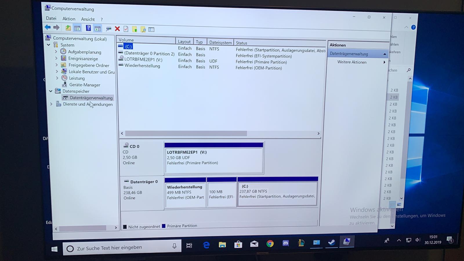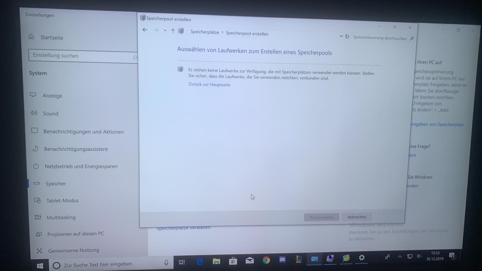 Hallo, ich habe mir einen neuen Computer von MSI gekauft, ohne Betriebssystem. Nun habe ich Windows10 Pro drauf installiert und gemerkt, dass keine HDD drinne erkannt wird. Jedoch wird mir die HDD im Gerätemanager und im BIOS System angezeigt. Im Datenträgerverwaltung ist weit und breit nichts davon zu sehen. Auch im Speicherpool befindet sich nichts. Es ist einfach leer.Ich habe es auch schon mit anderen SATA Anschlüssen probiert, überall das selbe Problem. Habe im Forum hier auch schon nachgesucht, aber die bisherigen Lösungen für das selbe Problem wie bei mir, waren bei mir nicht erfolgreich.