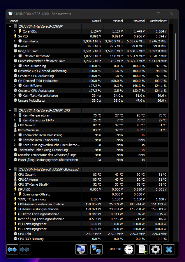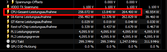 An dem Screenshot sieht man das deine AiO mit den aktuellen Einstellungen bei PL2/180W und PL1/160W am Limit ist.