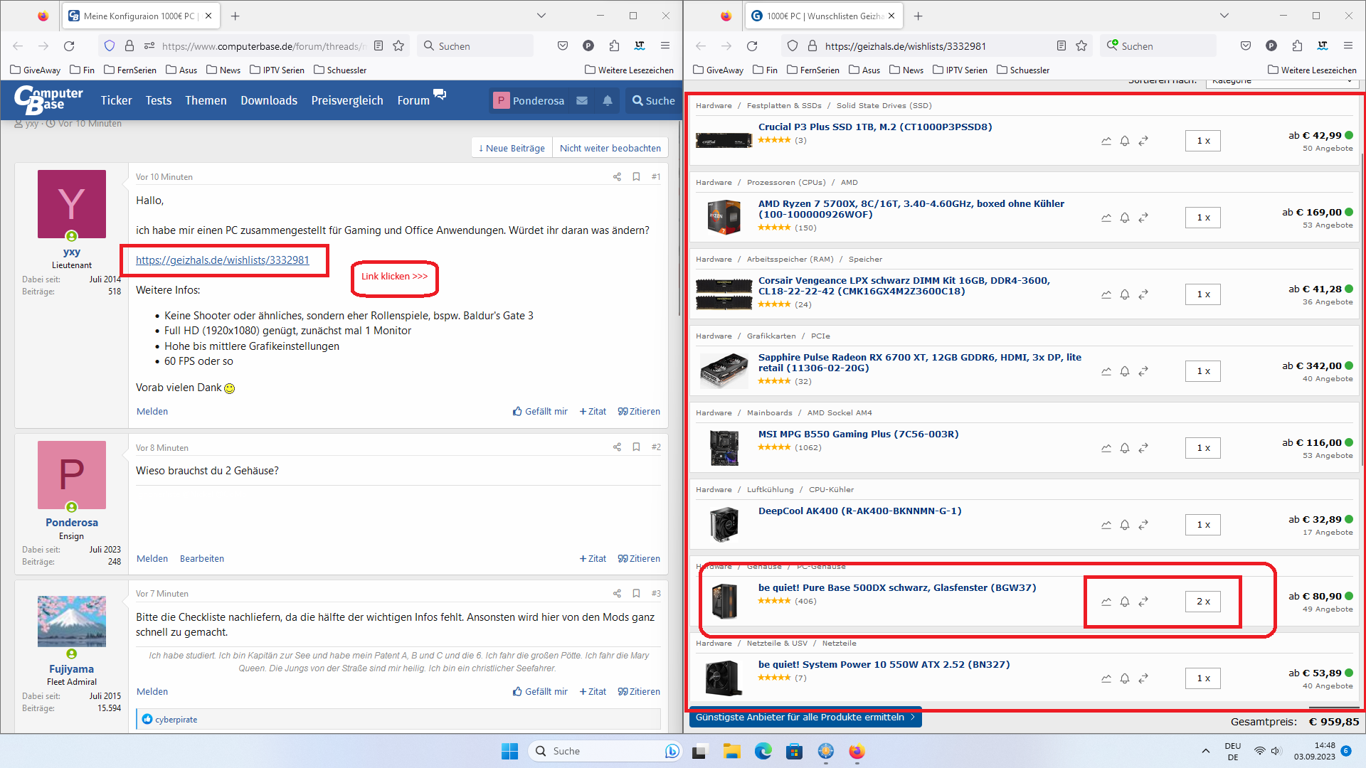 3. Hast du besondere Anforderungen oder Wünsche (Overclocking, ein besonders leiser PC, RGB-Beleuchtung, …)?