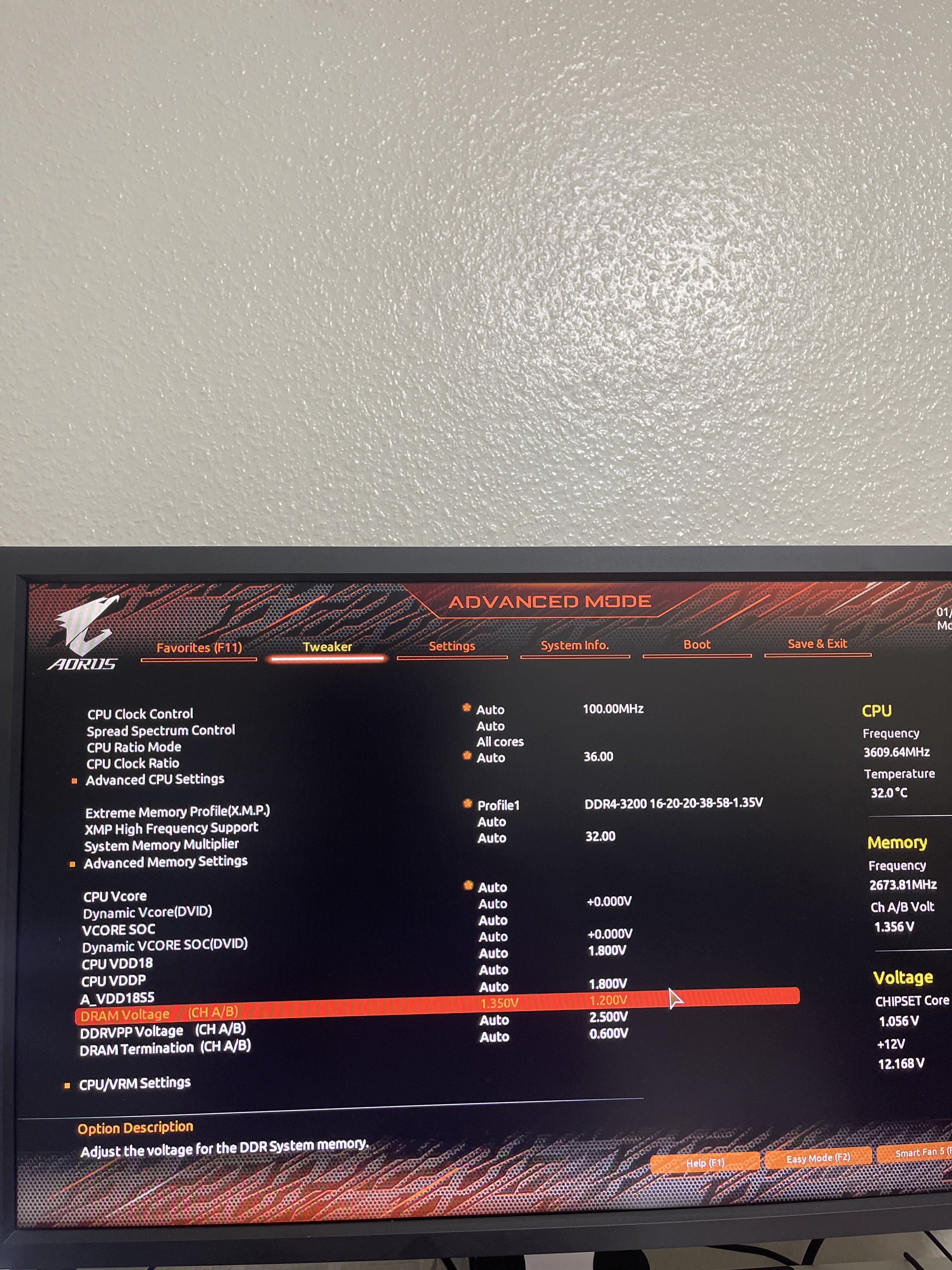 Meine RAMS laufen auf 2672Mhz statt auf 3200. es sind 2x16gb DDR4-3200 RAMs. CPU ist eine Ryzen 5 3600.