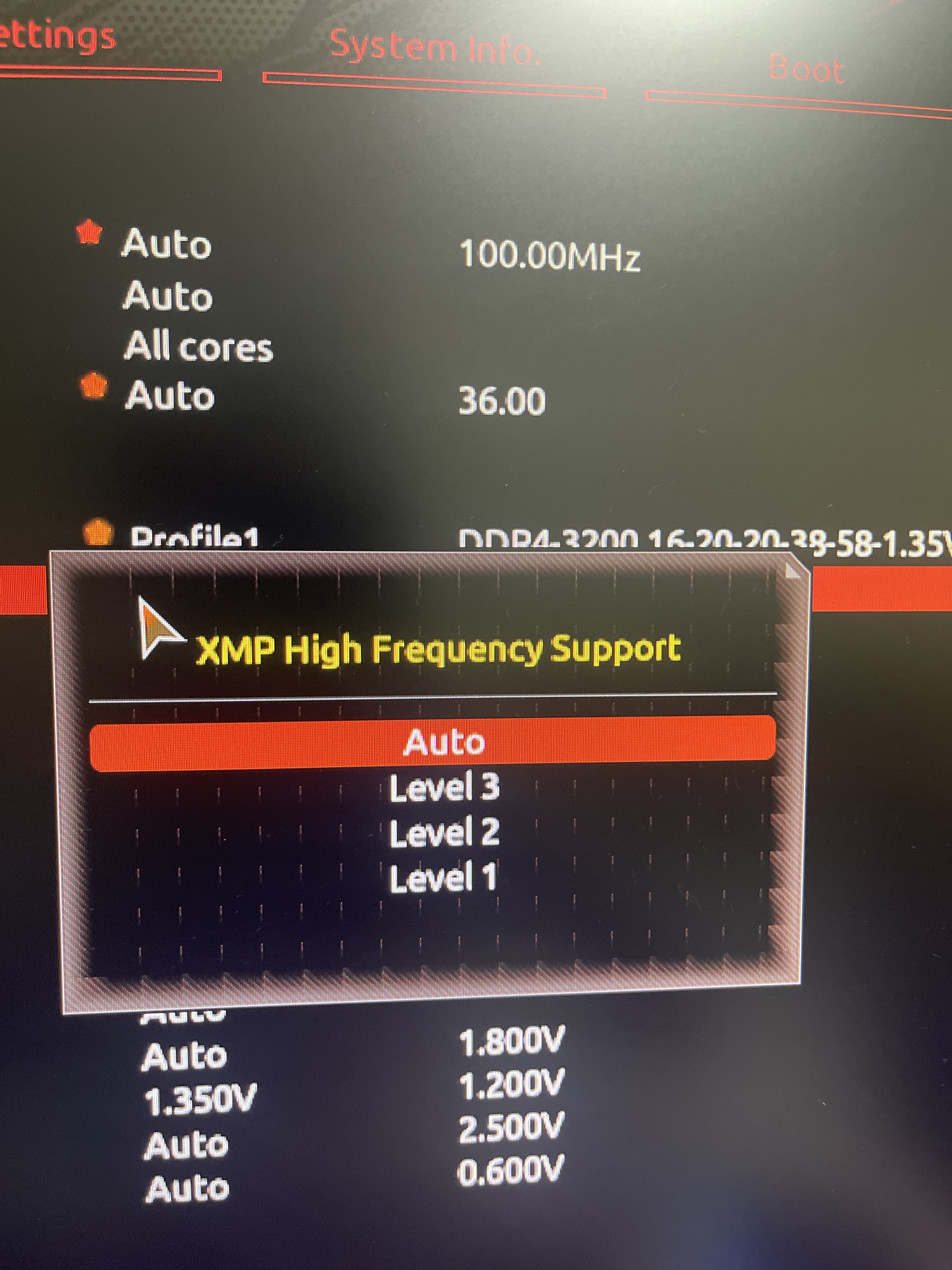 UNTEN bei DRAM VOLTAGE 1.35v manuell eintragen.