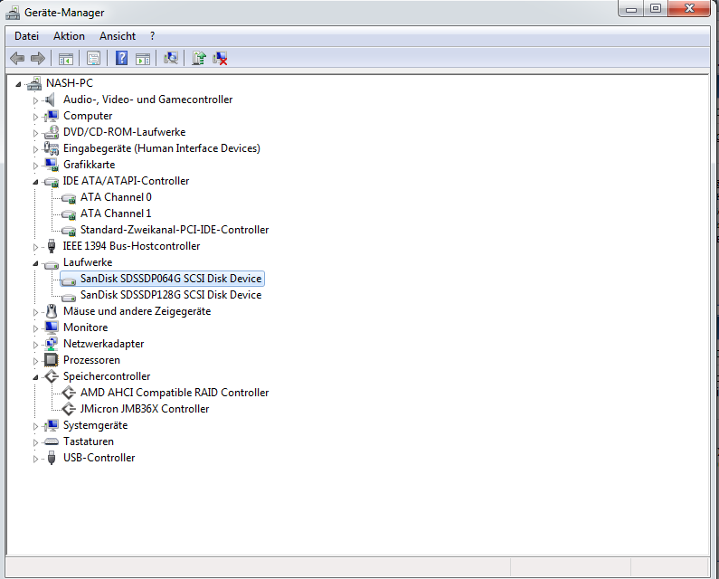 Festplatte: 1 X SanDisk SDSSDP-64G- G25 u. 1 X SanDisk SDSSDP-128G
