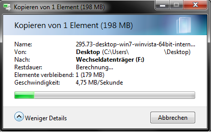 Wenn ich meinen USB-Stick hinten an den blauen UBS-3.0 Anschluss anschließe und Daten hin und her schicke, passiert genau dieses total langsam. (Siehe Anhang)