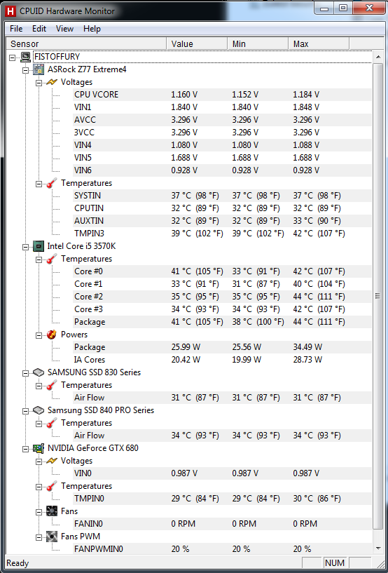 Hinweis:Zuerst wollte ich eigentlich 2x 7970 GHz verbauen, vorerst eine und in ein paar monaten noch eine, deshalb auch das Board und das Netzteil. Leider ist es zurzeit problematisch für die 7970 passende Kühler zufinden, außer man erwischt eine alte Charge. Bin glücklicherweise an eine 680 Classified gekommen, mit der bin ich natürlich auch zufrieden