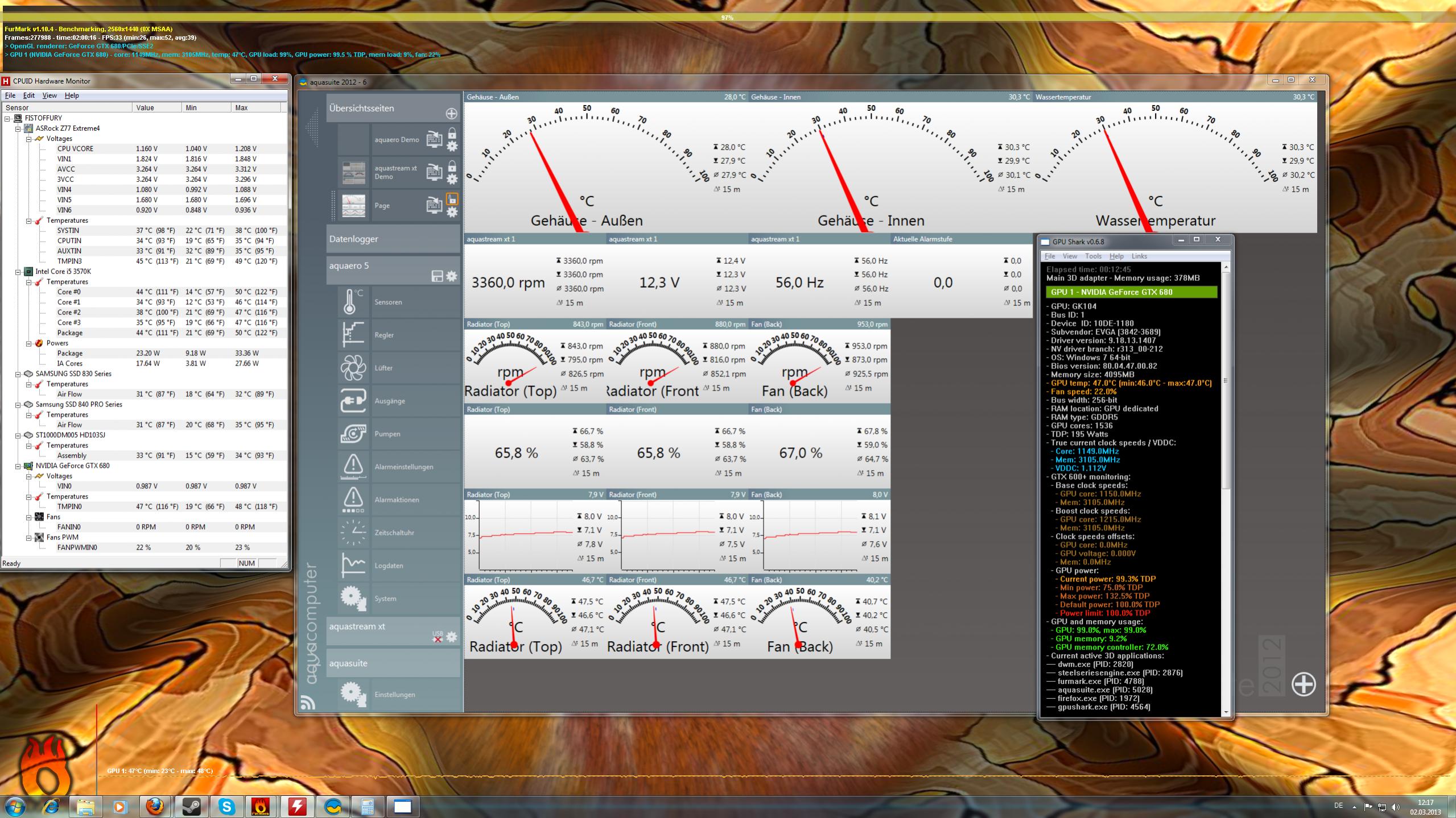 Als erstes hab ich Mainboard, Festplatten, DVD und CPU (Boxed Lüfter getestet. Zum einen um die Funktion der Hardware zu prüfen und um Windows zu installieren. Ich war mir nicht sicher wie das mit der Aquasuite Software ablaufen wird, deshalb hab ich diese gleich mit installiert.