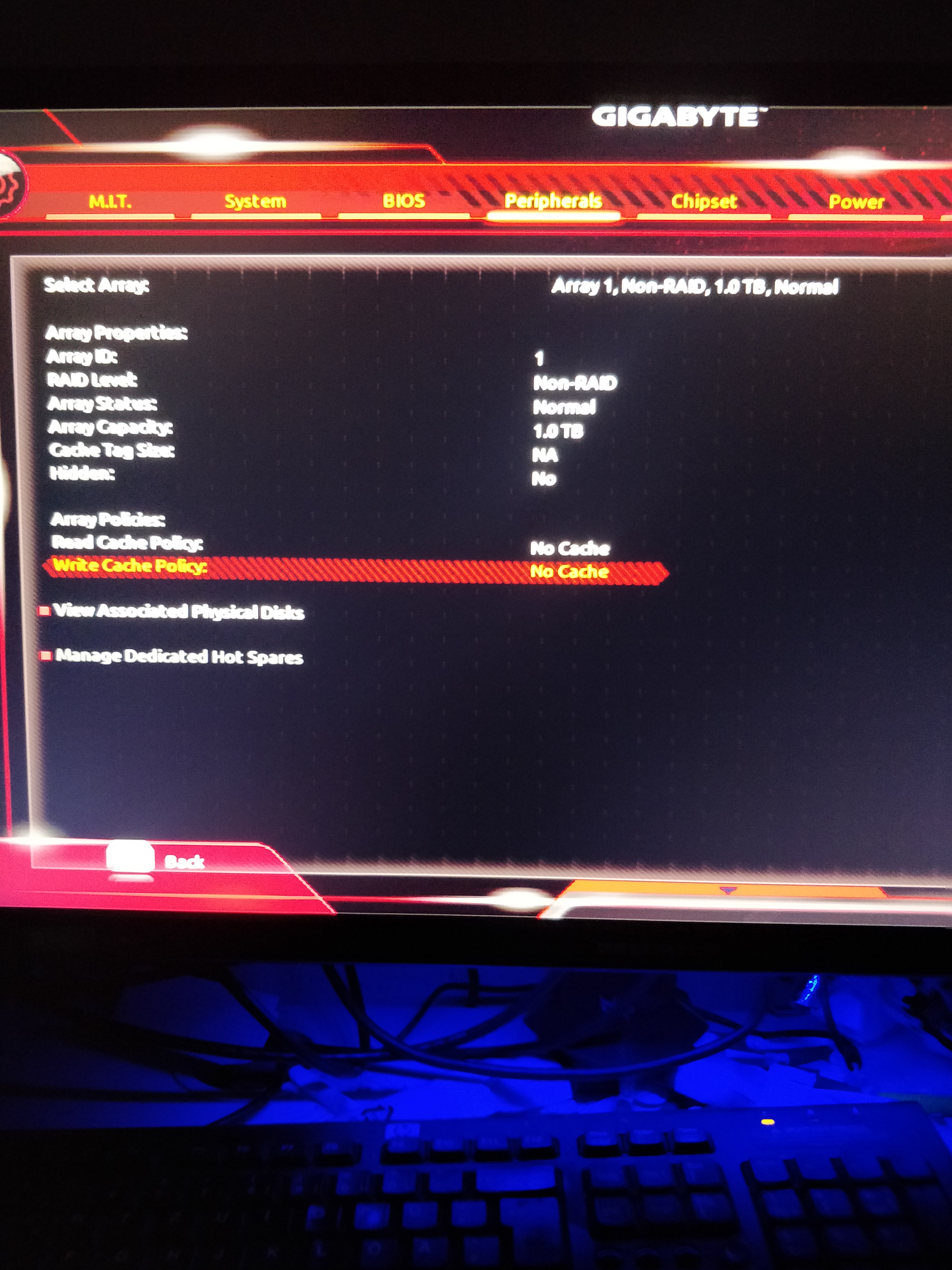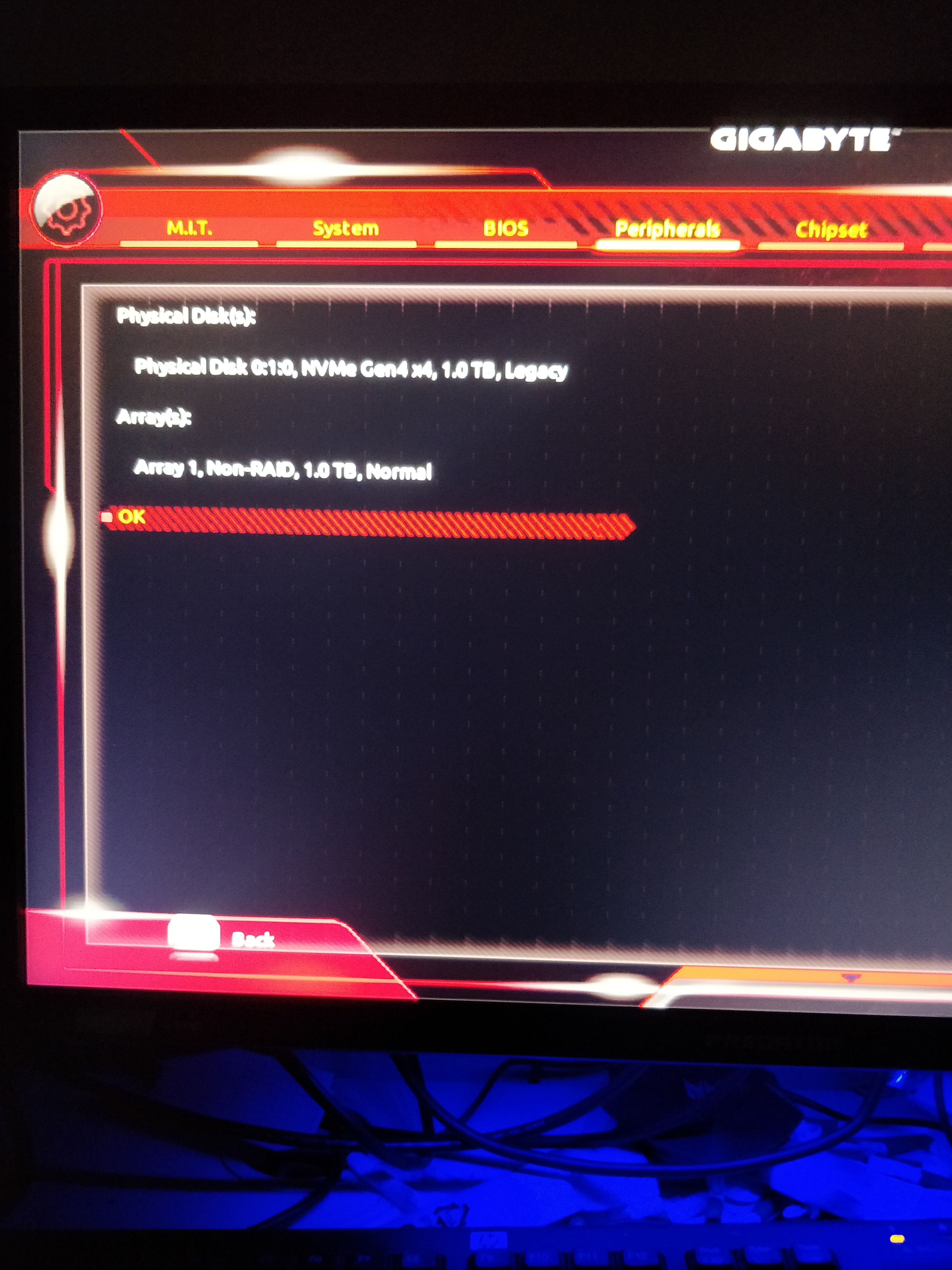 Unter dem Punkt Peripherals>RaidXpert2 Configuration Utility>Physical Disk Management>View Physical Disk Properties kann ich jedoch meine Erste NVMe M.2 SSD sehen. (Foto folgt in Antwort, Schreibe auf besagtem PC)