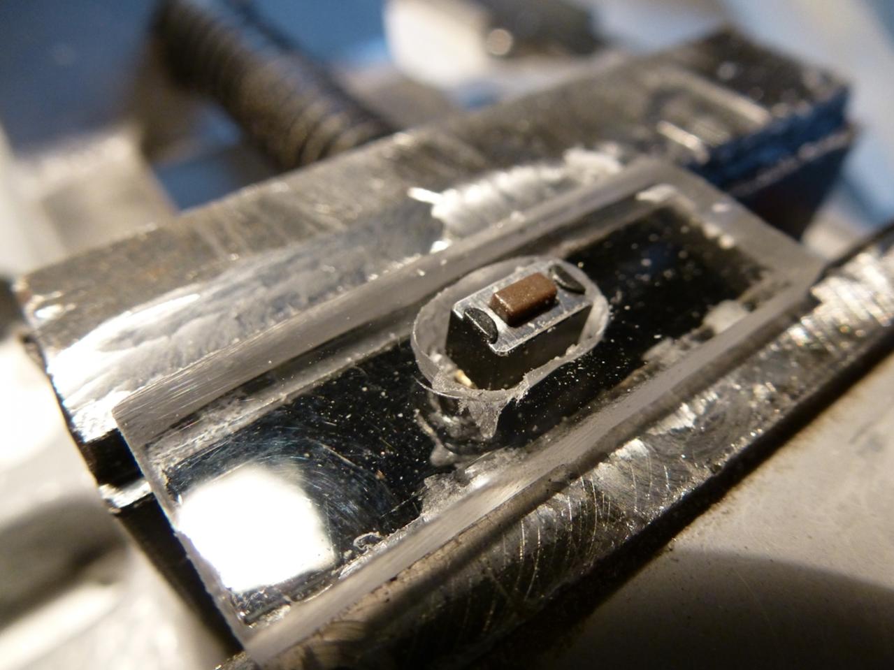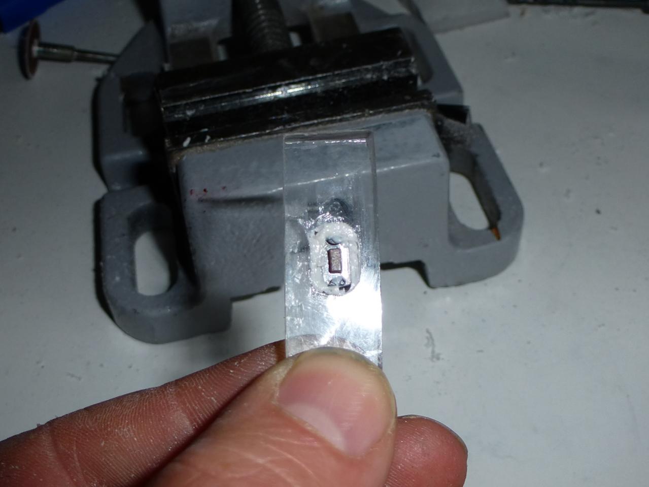 Ausschneiden, Prüfen, Sackloch 3mm für die LED rein.
