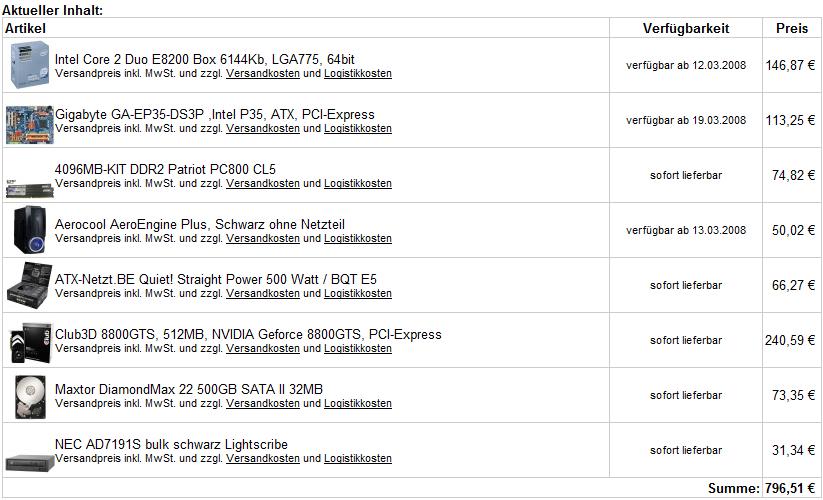 ich bin gerade dabei, mir einen neuen PC zusammenzustellen.. habe ein bissel gesurft, bin aber grundsätzlich kein Hardware-Experte...