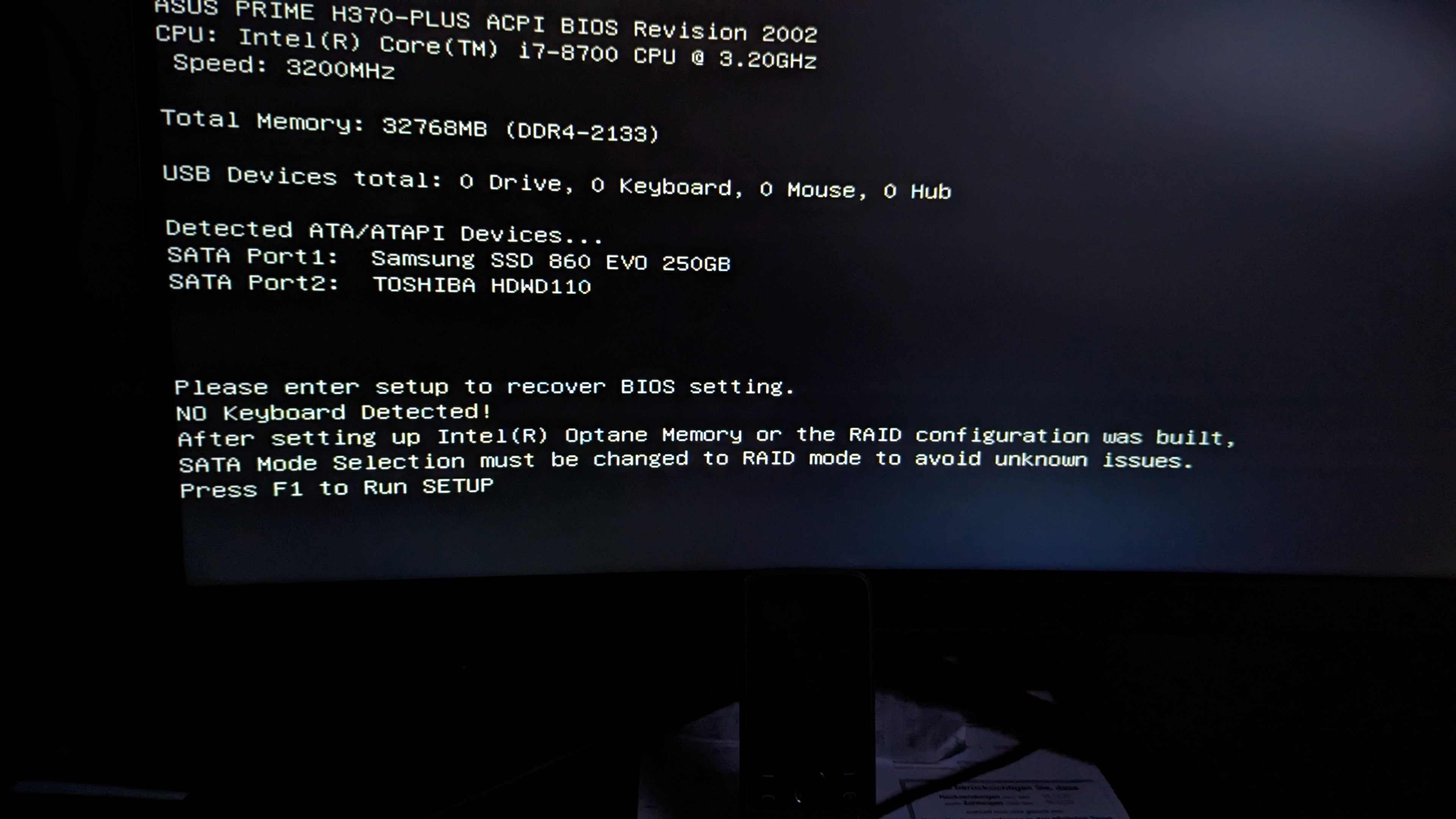 Hier muss ich dann über F1 den Start über BIOS fortsetzen.