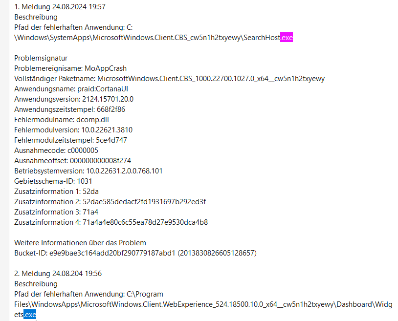 Pfad der fehlerhaften Anwendung: C:\Program Files\WindowsApps\MicrosoftWindows.Client.WebExperience_524.18500.10.0_x64__cw5n1h2txyewy\Dashboard\Widgets.exe