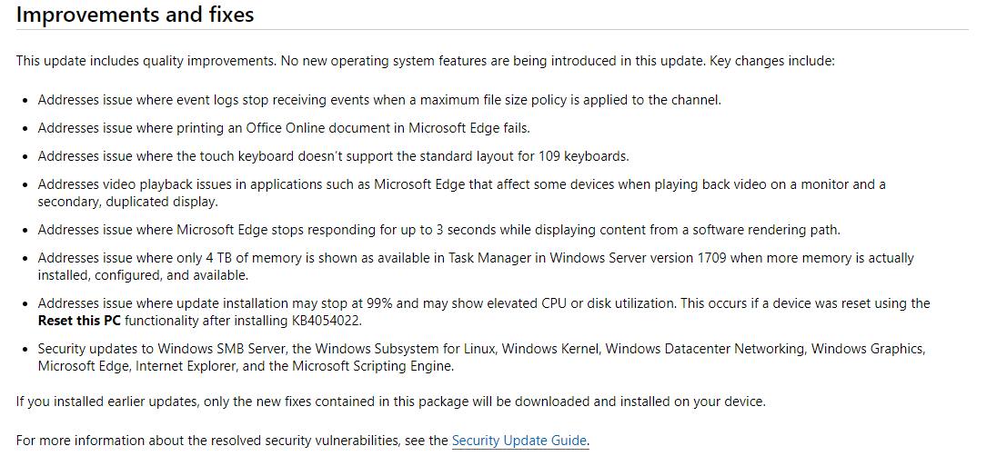 https://support.microsoft.com/en-us/help/4056890/windows-10-update-kb4056890 schrieb:Security updates to Microsoft Edge, Internet Explorer, Windows Graphics, Windows Kernel, Windows Datacenter Networking, and Windows SMB Server.