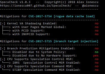 Kann mal jemand mit AMD-CPU das PowerShell-Script ausführen? Da sollte dann stehen: "Hardware Requires Kernel VA Shadowing: False", d.h. der Meltdown-Workaround ist dort nicht erforderlich und dementsprechend auch nicht aktiv.Tearso schrieb:Wird da bei Windows jetzt Oberhaupt getrennt zwischen Intel und AMD?