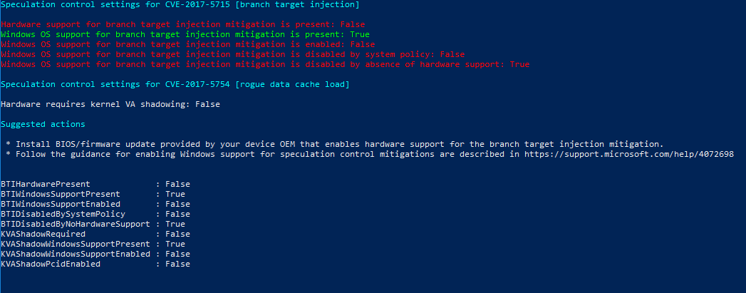 Hmm, ist das PowerShell-Script derselben Meinung wie SpecuCheck? Wenn ja, dann würde ich nochmal herumprobieren und die Updates vielleicht neu installieren. Ich nutze aber selbst Windows nur sehr selten, vielleicht können da andere mehr zu sagen.The_Void schrieb:das ist nicht korrekt. ich habe das windows update installiert! finde ich merkwürdig, daß es nicht zum tragen kommt. ich muß aber sagen, ich habe es manuell ausm windows katalog installiert.