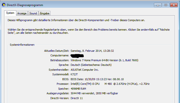 Mein Laptop ist von Asus K72JT. Ich habe ja auch die 64 Bit von Windows 7