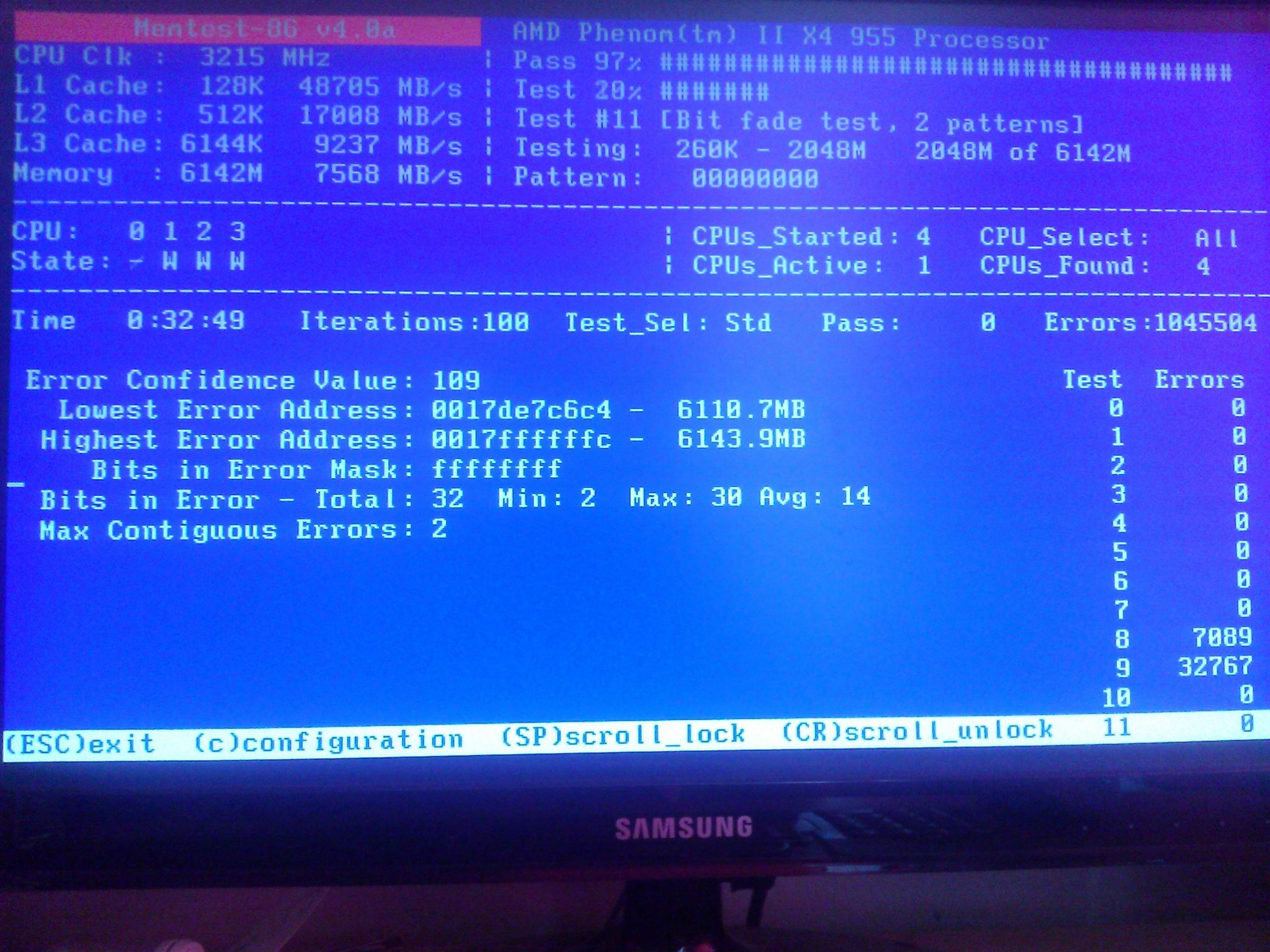 Nachdem ich unzählige Abstürze bei Battlefield 3 hatte, wo nicht mal ein Bluescreen kam, sondern der Sound einfach stecken blieb und das Bild verzerrt war, hab ich verschiedene Sachen ausprobiert und jetzt schlussendlich auch einen Memory-Test durchgeführt.