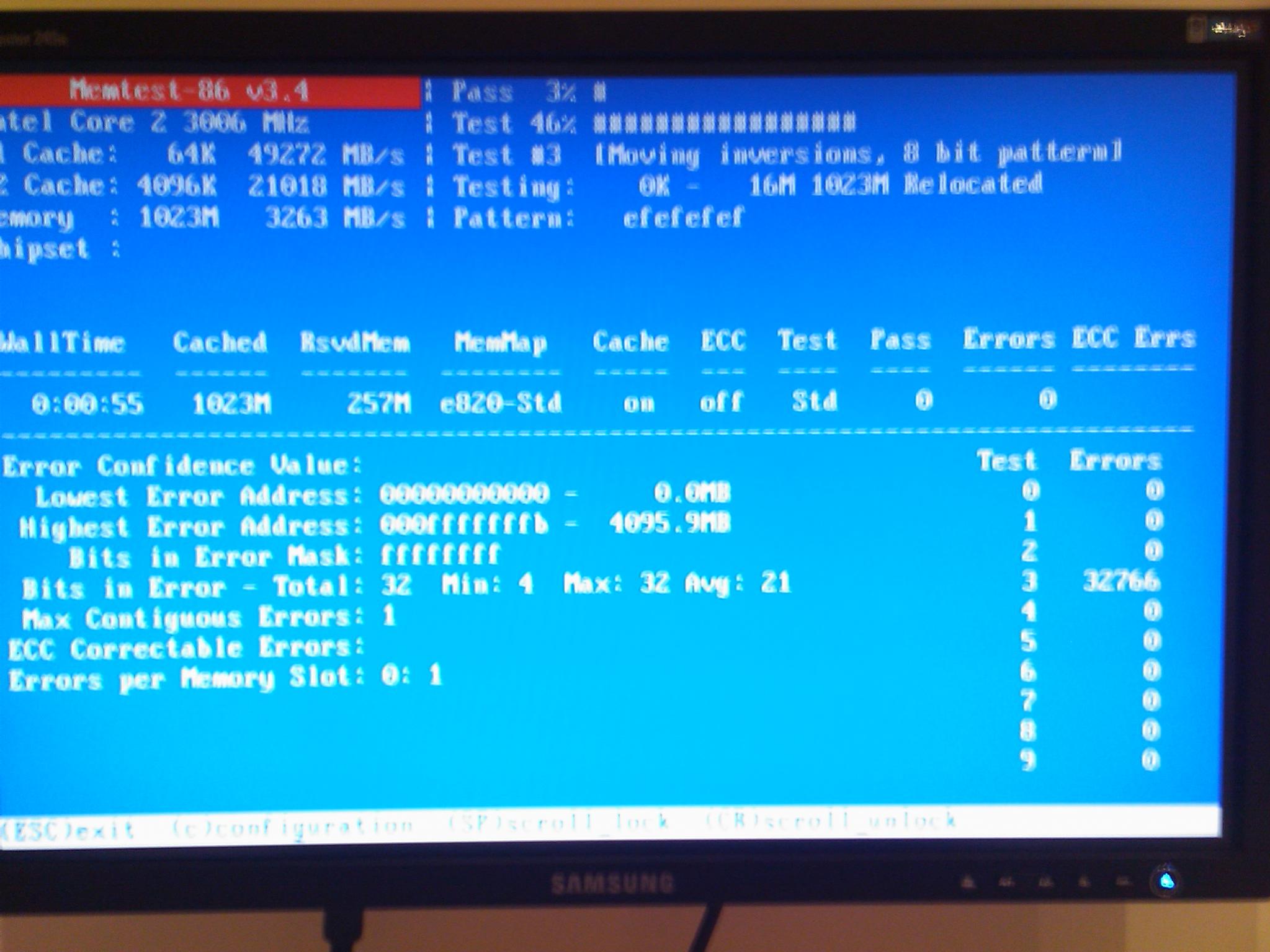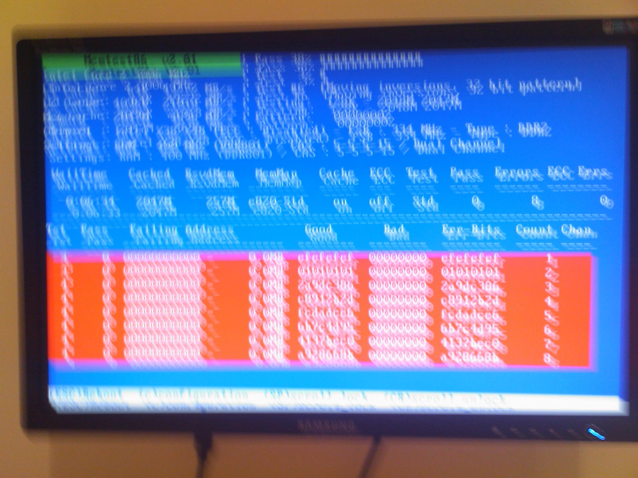 Heute habe ich mal mit Memtest 2.01 meine OCZ Riegel getestet und dabei wurden einige Fehlermeldung ausgespuckt.
