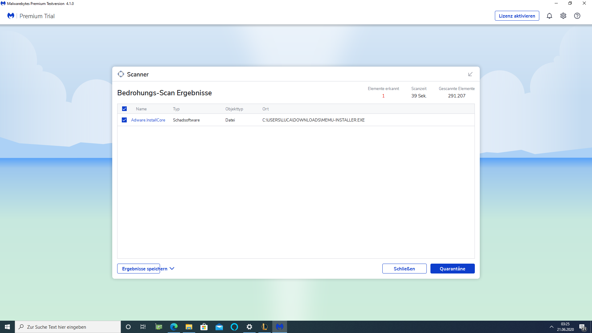 Nachdem ich einen Virenscan durchführte, erkannte mein Virenprogramm Malwarebytes den Menu-Installer als Schadsoftware, bzw. als Adware.