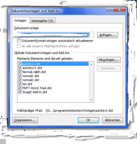 Es ist immer schlecht wenn jeder seine eigene Vorlage erstellt und diese dann bei allen geladen wird.
