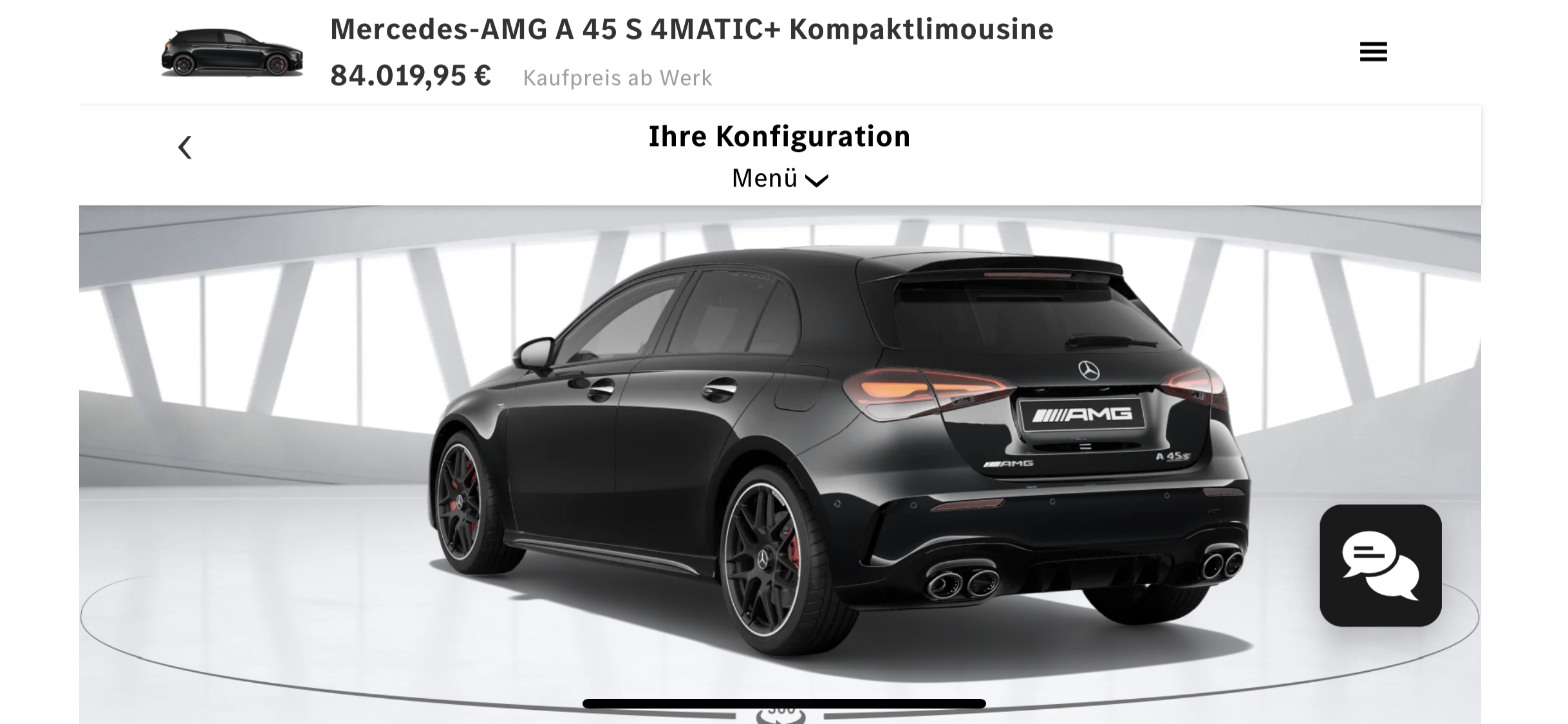 Den Mercedes-AMG A45 S gibt es im Konfigurator.nlr schrieb:Nice, dass sie nicht mal ein passendes Bild zu deinem Auto im Store haben. Auf dem Bild ist ja eindeutig das MBUX 2 der S-Klasse zu sehen.