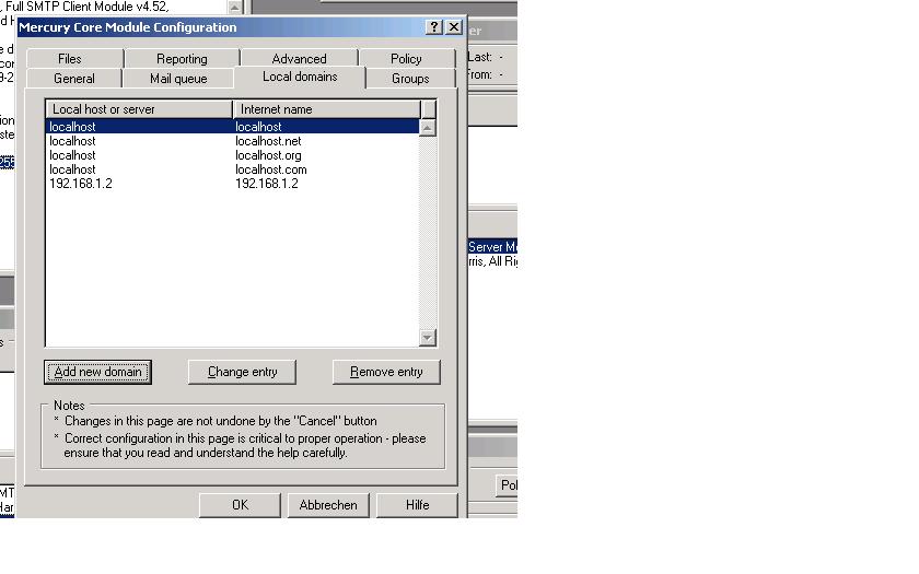 Wenn ich Outlook oder auch Pegasus Mail auf den Mailserver einstelle dann klappt zwar auch der Verbindungsaufbau zum Mail Server (SMTP und POP3) aber die Testmail kann nicht gesendet werden. Wenn ich dann versuch ne Mail vom Outlook zu einem anderen Konto auf dem Mailserver zu schicken kommt immer die Fehlermeldung 550 5.7.1. Unabel to relay for "Mail-Konto". Ich bin der Meinung dass das an den Local Domains liegt.