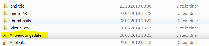 Clicke ich auf die Verknüpfung Anwendungsdaten bekomme den komplett gleichen Ordnerinhalt angezeigt.