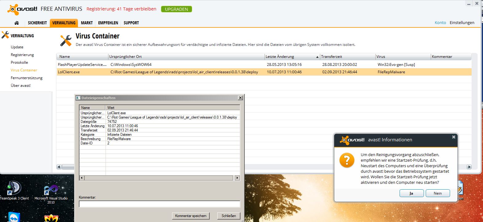 Um was für einen Virus handelt es sich und sollte ich diesen Reinigunsvorgang abschließen mit dieser Startzeitprüfung + Neustart?