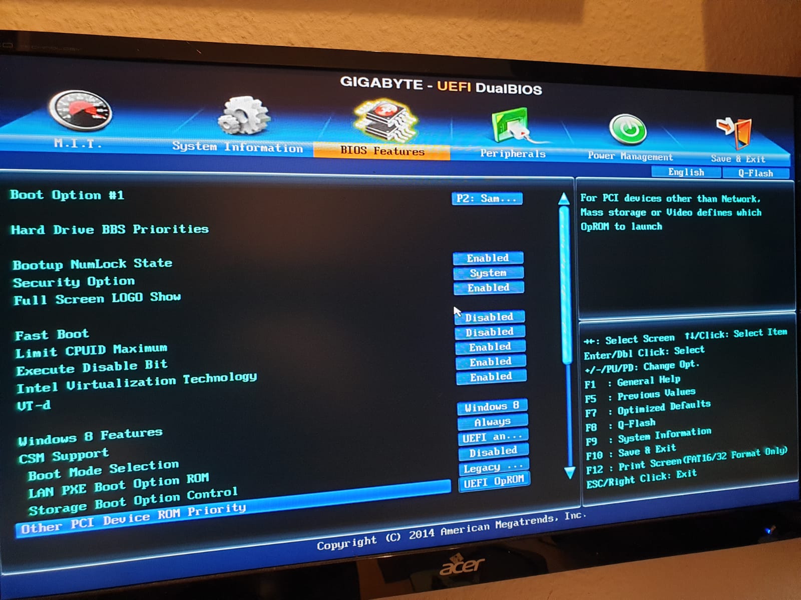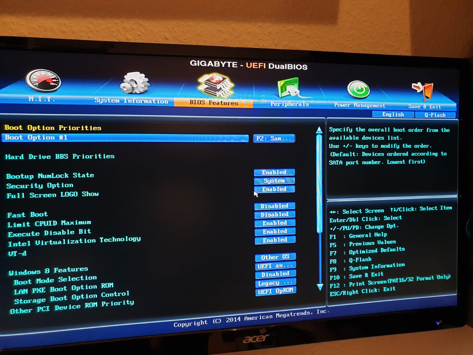 Ich habe bevor ich alle Laufwerke abgesteckt habe mal die SSD mit dem Kabel des DVD Laufwerks verbunden und so wurde sie angezeigt. Daraufhin habe ich versucht das System zu starten und bin in folgenden Fehler gerannt (1. Bild im Anhang). Ich habe auch zwei verschiedene BIOS Einstellungen versucht. Einmal mit Windows 8 und einmal mit Other OS, leider beide ohne Erfolg. Auch die beiden Einstellungen habe ich abfotografiert und hänge sie mal an.
