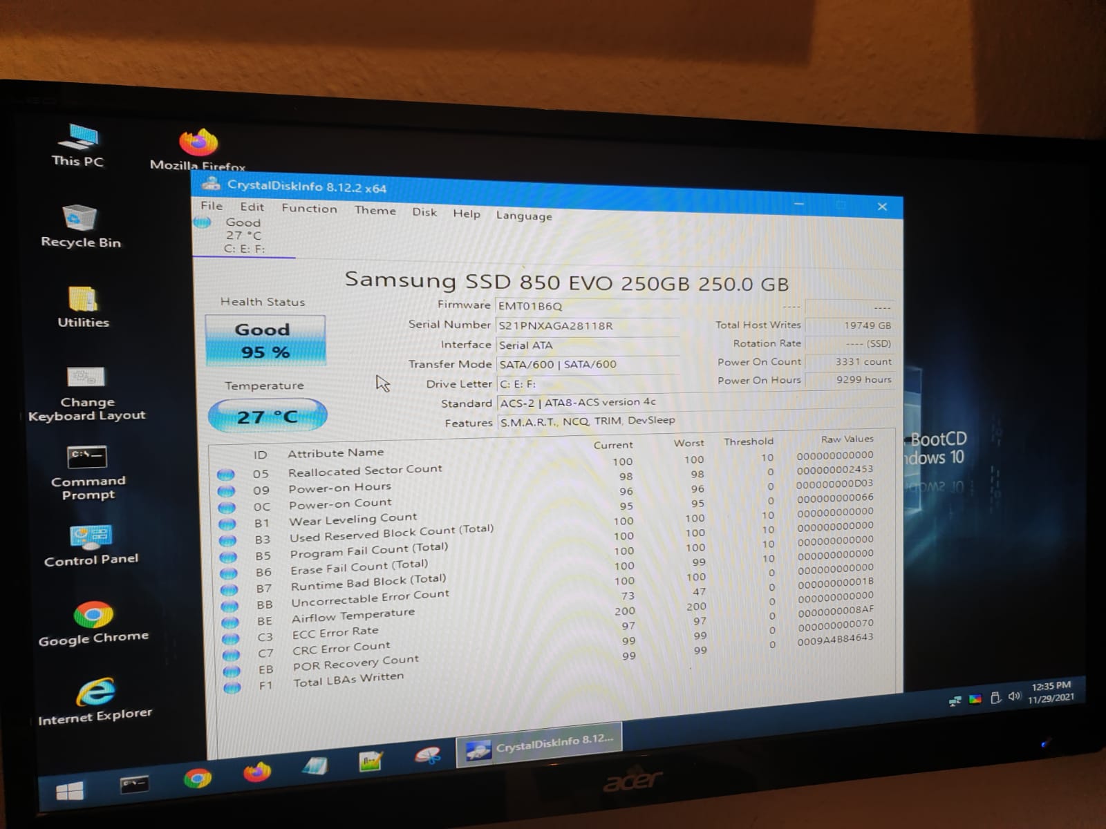 Okay entschuldigen für die dumme Frage wie ich weiter vorgehen soll. Ich kam selbst darauf, die Festplatte wieder anzuschließen und ein Bild von der Geräteverwaltung und CrystalDisk zu machen