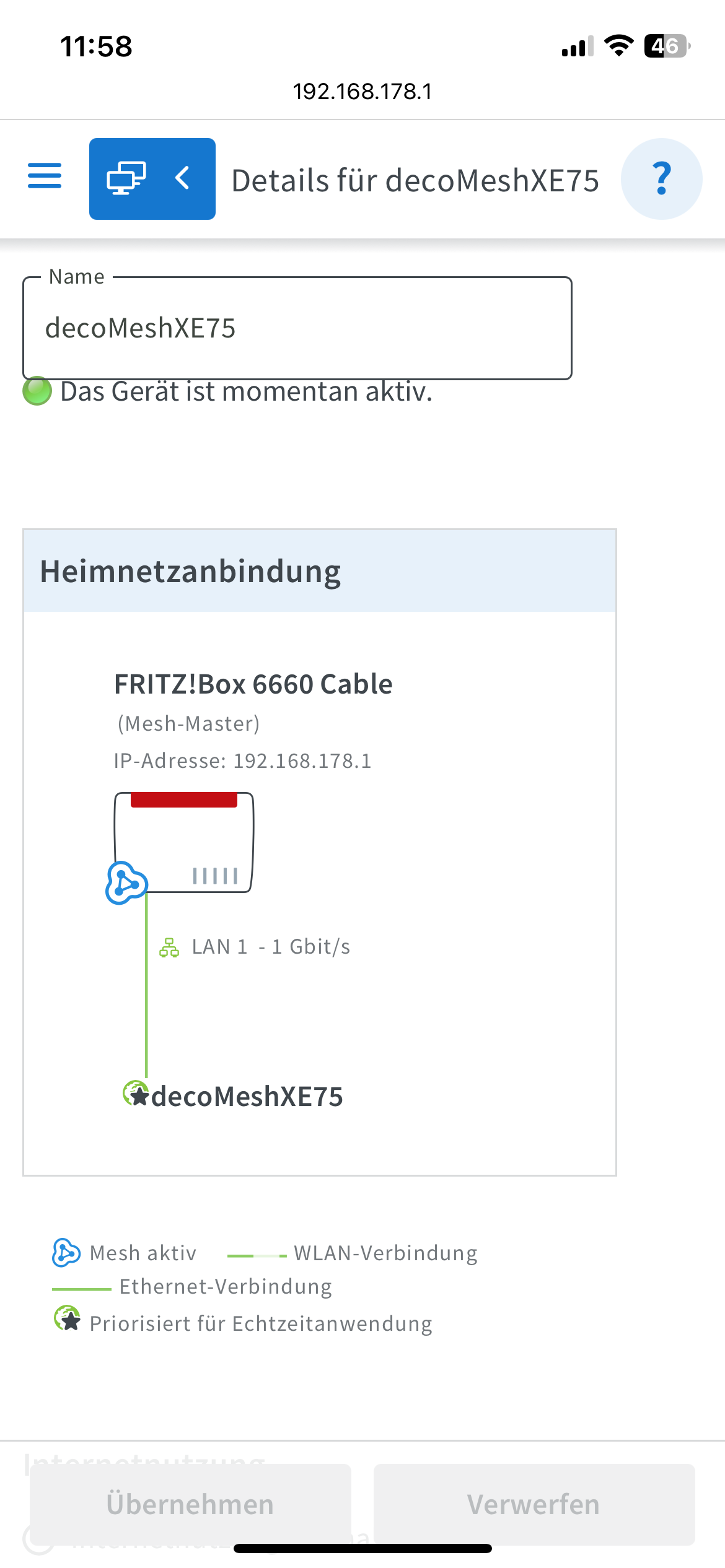 Betrieben wird es an einer Fritz Box 6660 am 2,5g Port.