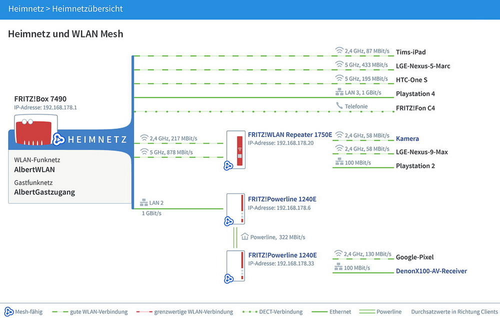 Meine Frage ist nun: Die FritzRepeater 1750E haben ja einen LAN-Anschluss. Ist es nun generell möglich, mit mehreren davon ein Mesh-Netzwerk aufzubauen, selbst wenn die einzelnen Repeater keinen direkten Funkkontakt haben?