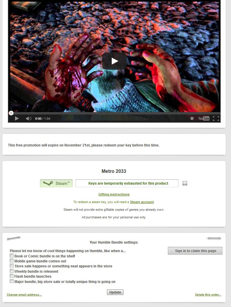 Man bekommt keinen Key per Mail zugesandt, sondern soll sich über HumbleBundle auf Steam einloggen.