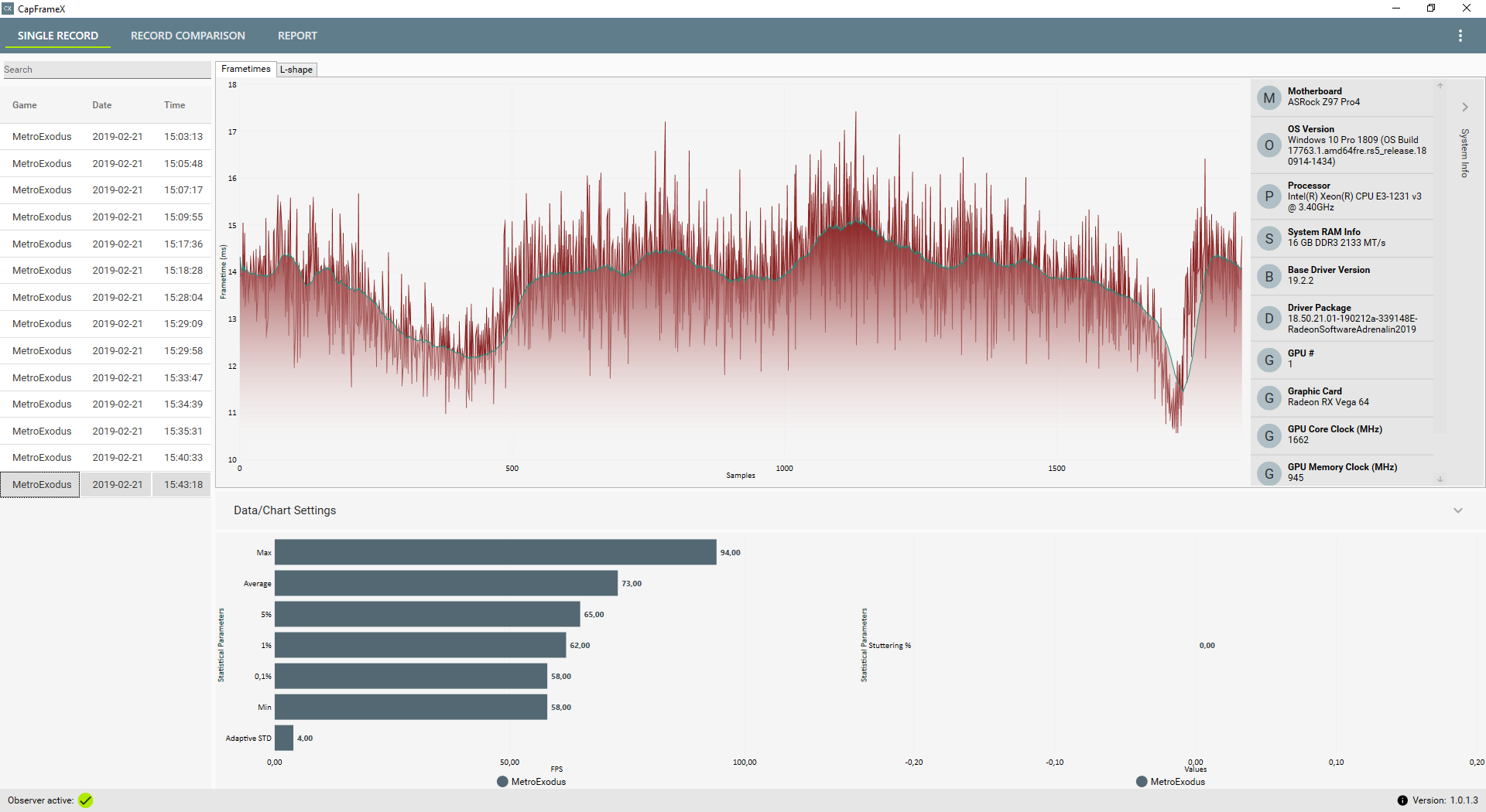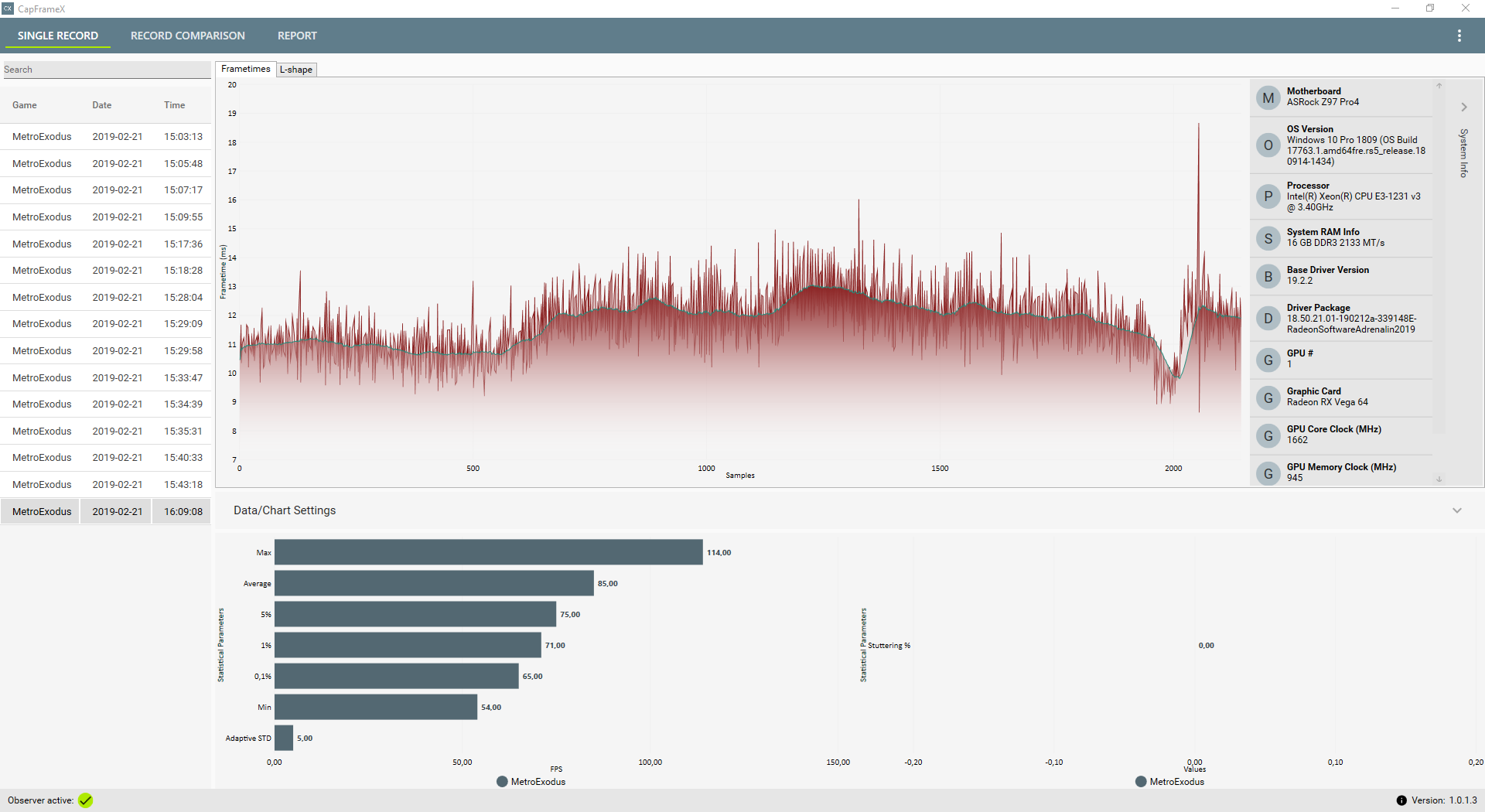 Hier mal mein Ergebnis, Systemwerte sind mit im Screenshot. Graka ist die Sapphire Vega56 Pulse, GPU-Takt ist stock, lediglich der RAM ist auf 900 und nicht 800, etwas undervoltet und PT + 15 %. Freesync ist an, Chill auch.