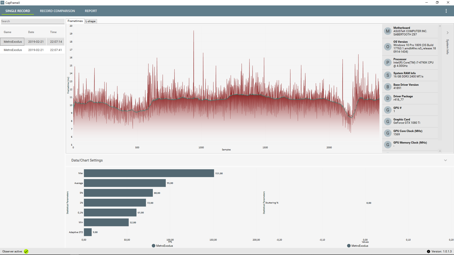 Könntet ihr mal bitte ca. 60 Sekunden mit RTX on aufzeichnen? Am besten eine Innenraumszene. Ich bin nur an dem Frametime Graphen interessiert.
