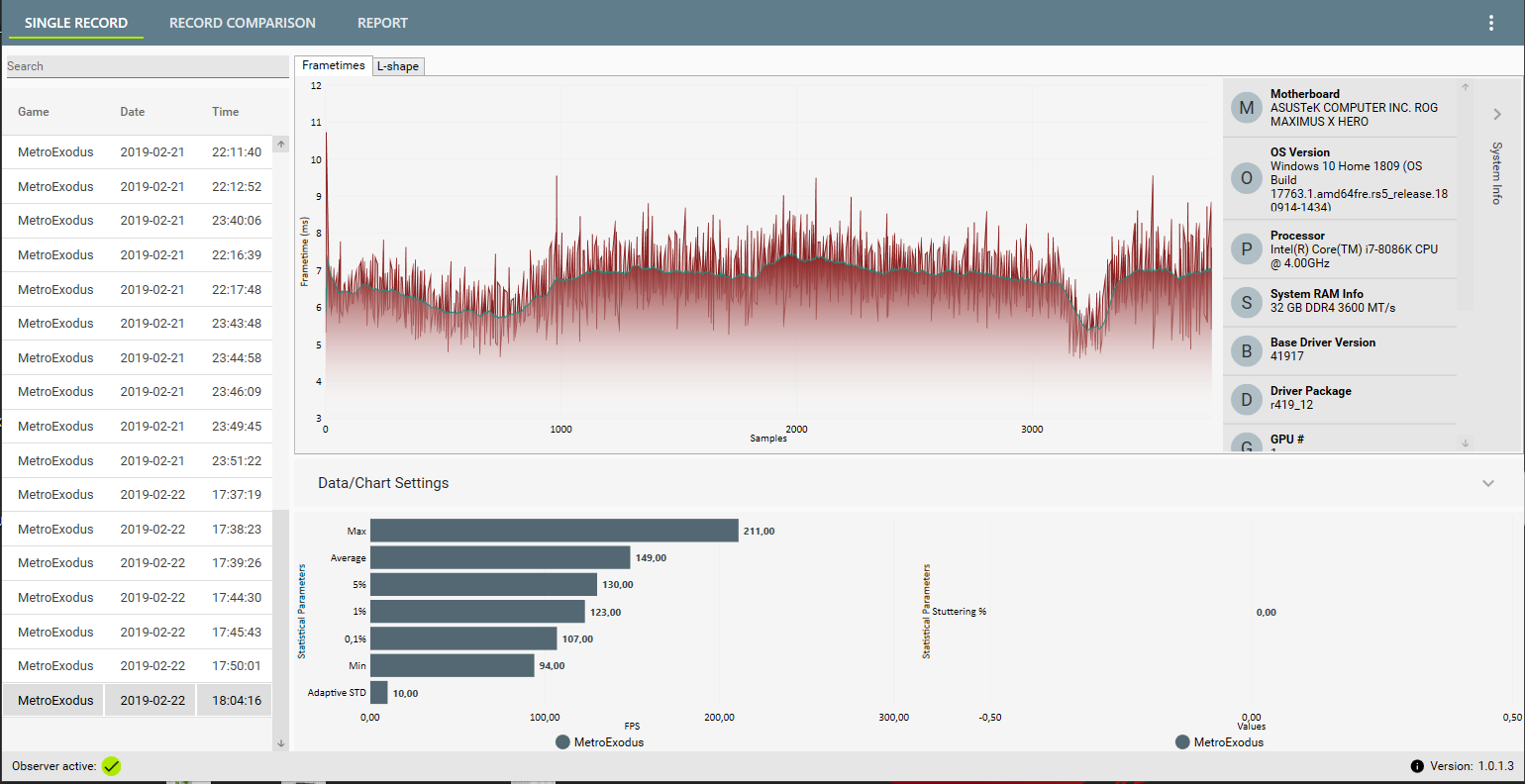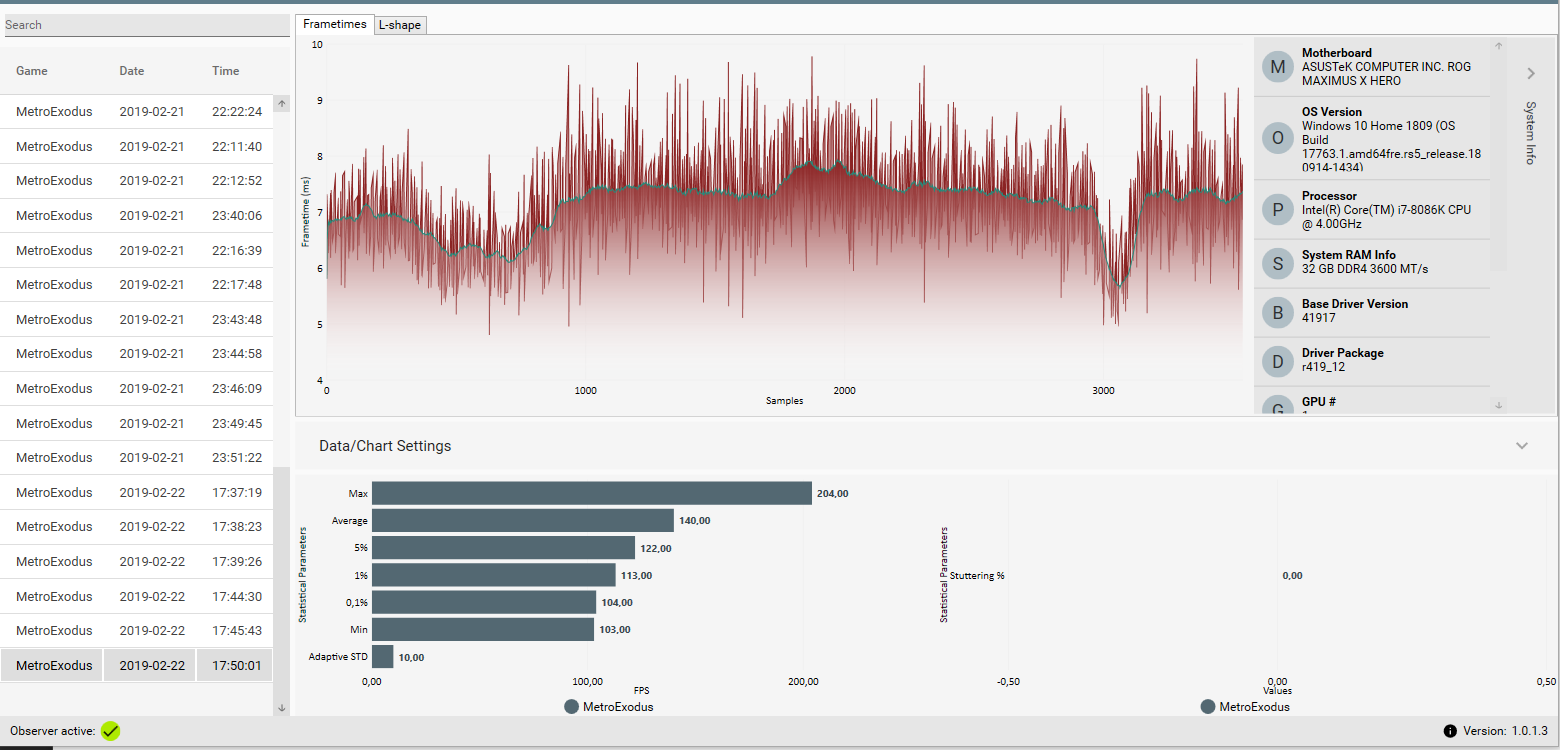 Ich bin bei meinem Programm also auf möglichst viele Auswertungen gegangen....Durchschnitt, percentile und low Werte in 5, 1 und 0,1% Stufen.