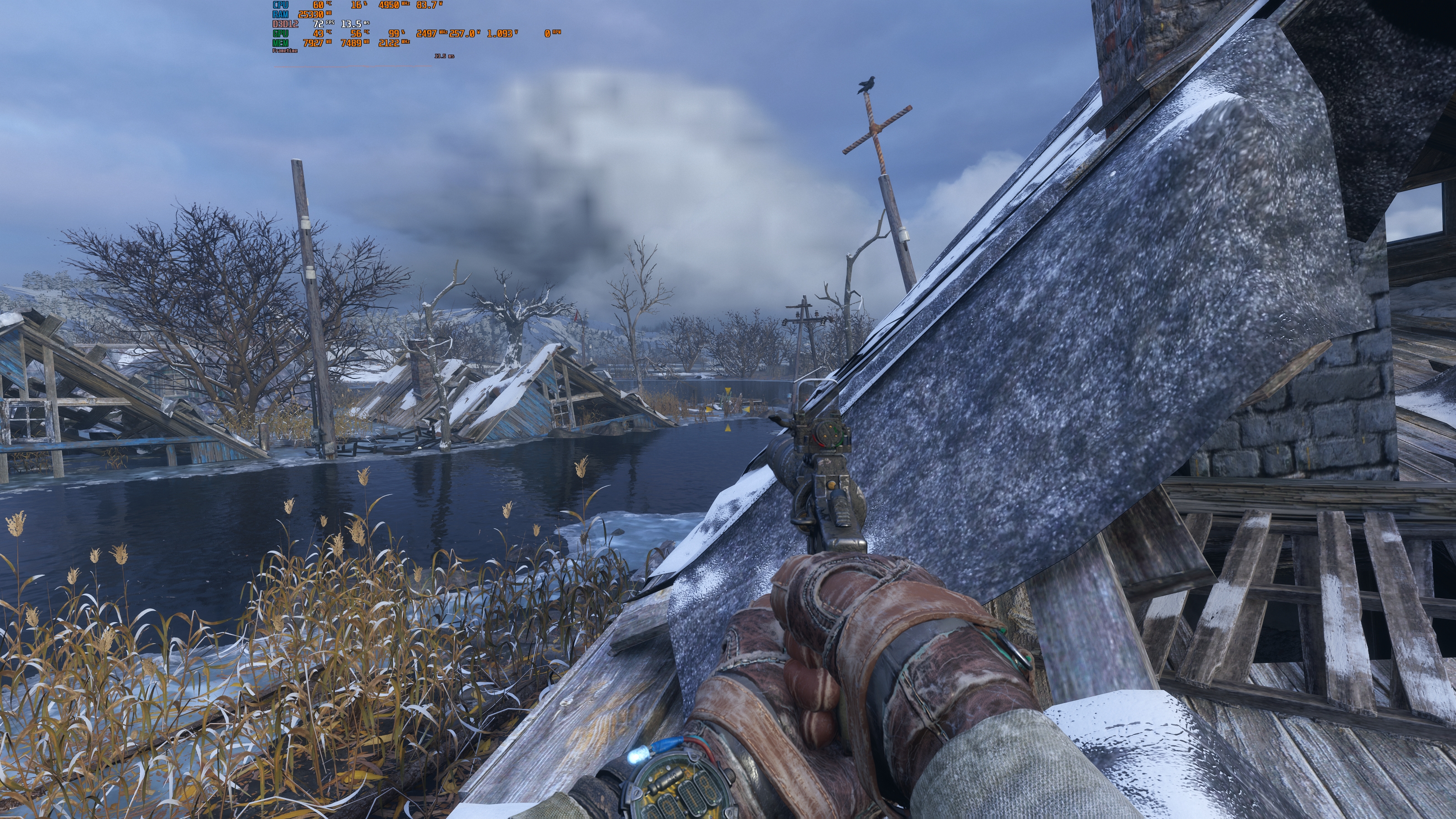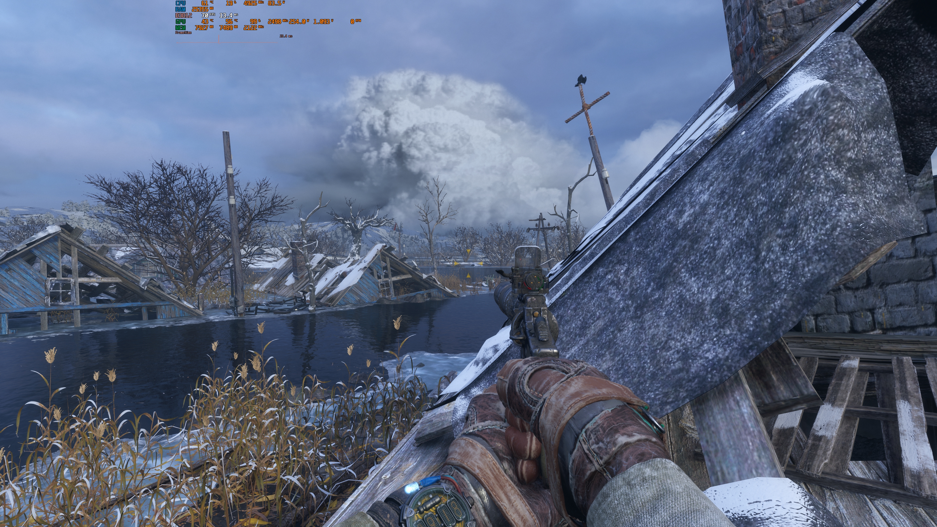 Was ist denn da mit den Wolken passiert?bad_sign schrieb:Also das interne Upscaling ist ja Shit. 3200x1600 mit Graka Upskaling auf UHD ist erheblich ruhiger, als 0,8x Resscale von Metro selbst.